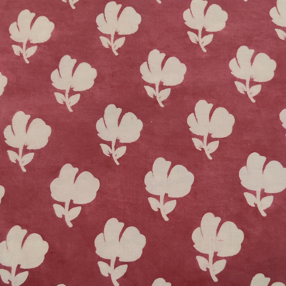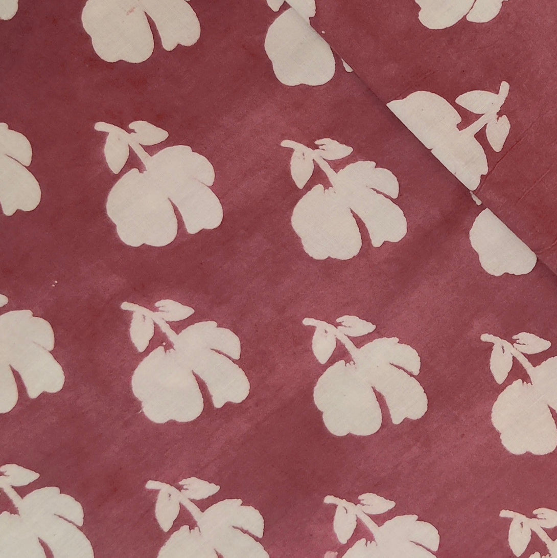 ( Blouse Piece 1.35 Meter ) Pure Cotton Dabu Mauve Pink With Cream Floral Motifs Hand Block Print Fabric