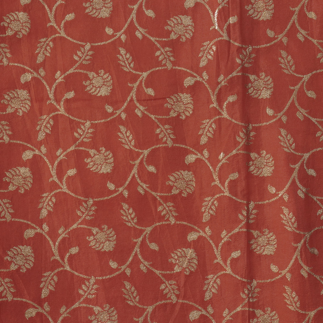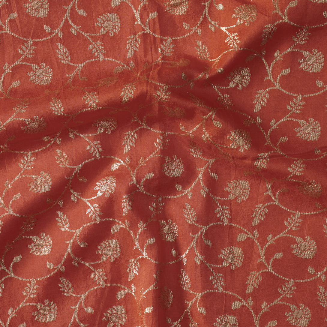 Heavy Dola Silk Orange With Light Golden Flower Jaal Hand Woven Fabric