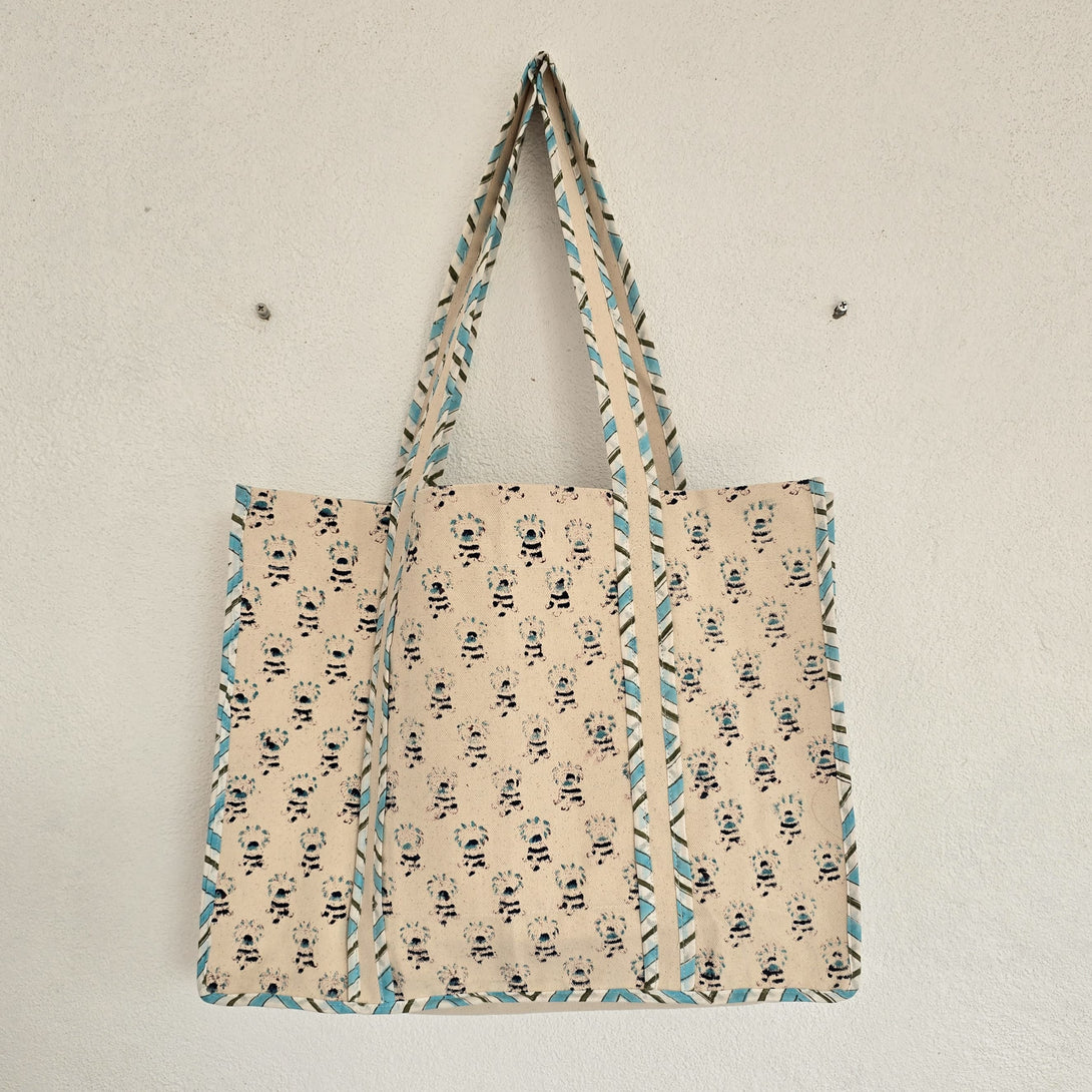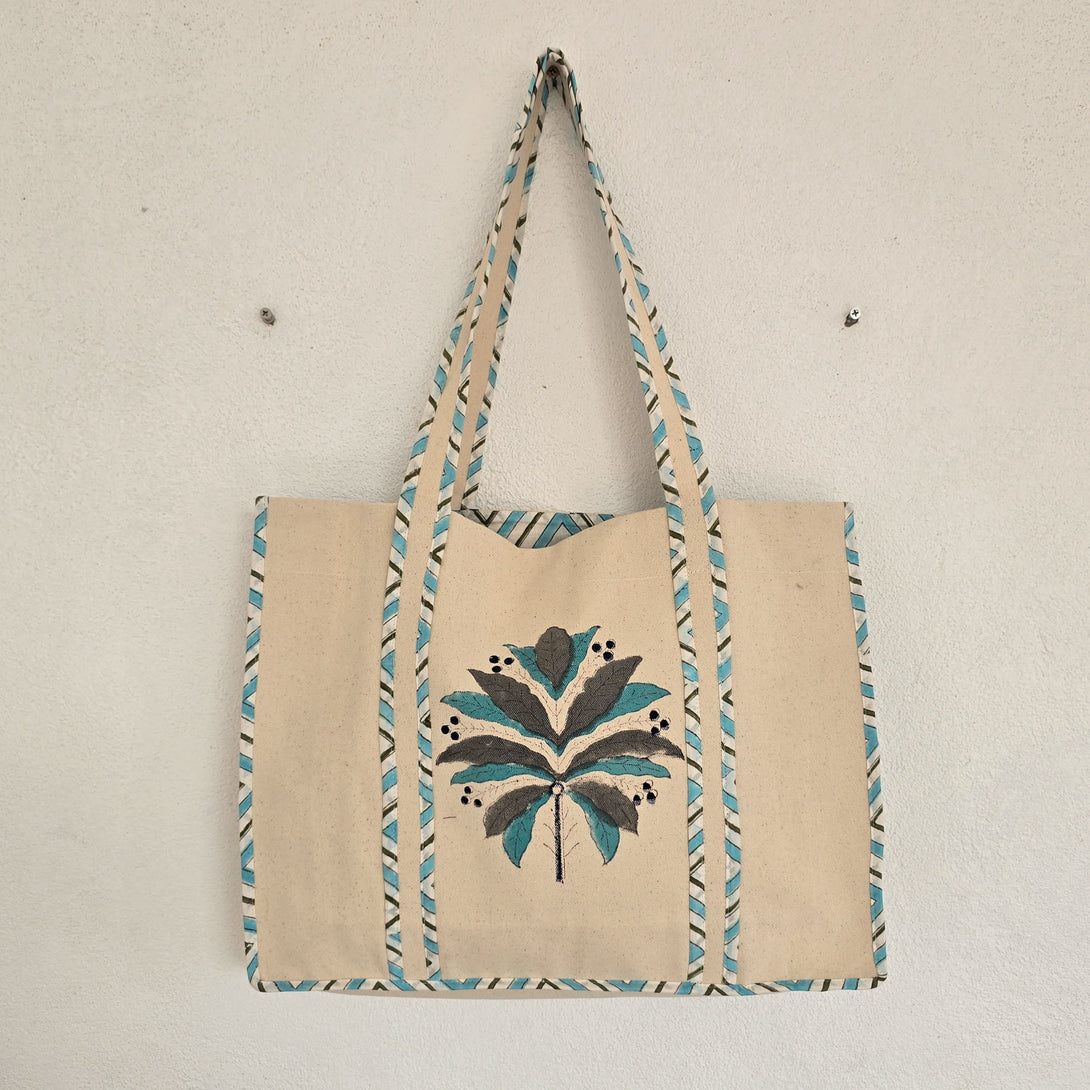 Handblock Canvas tote bag is a stylish and practical accessory that’s perfect for carrying your essentials.