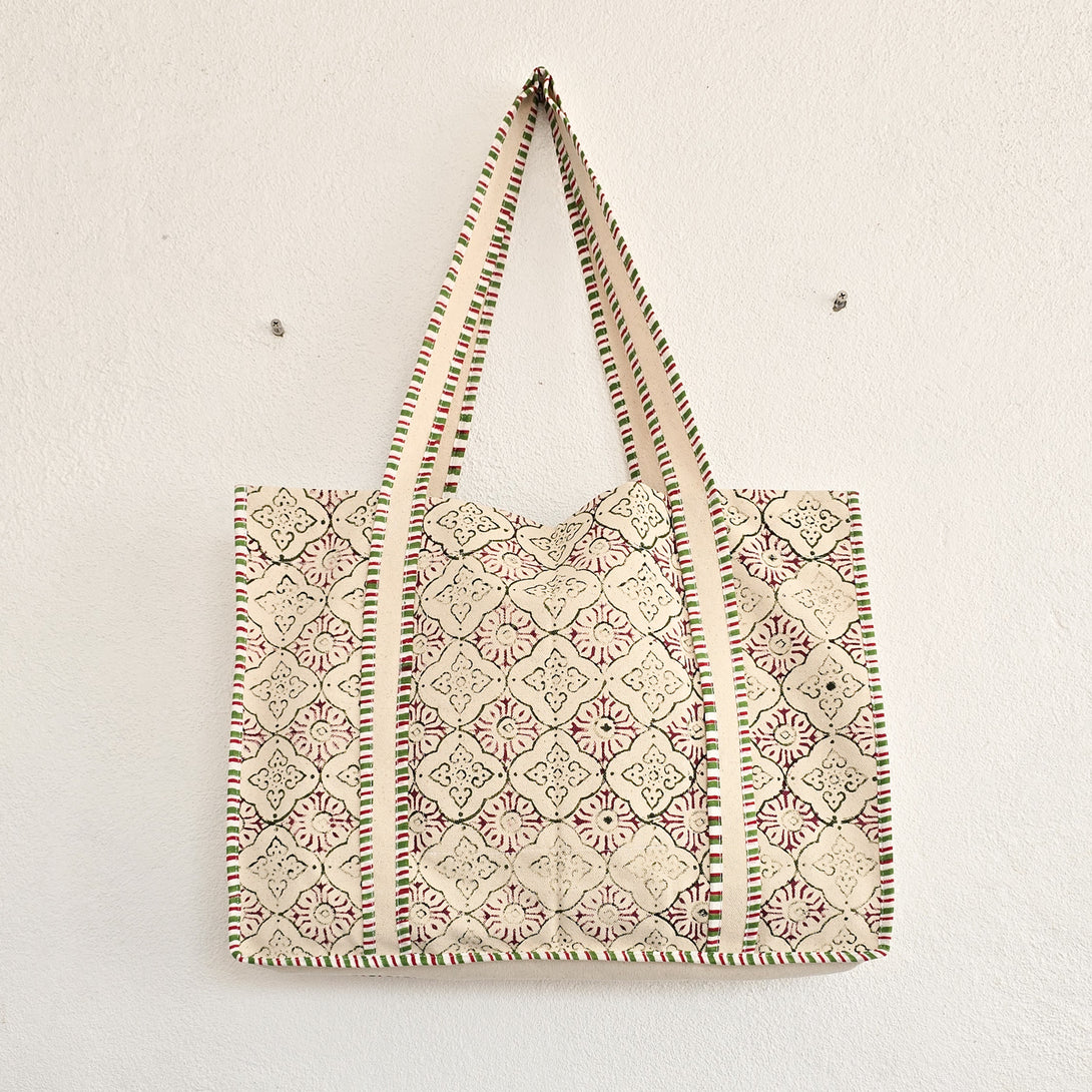 Handblock Canvas tote bag is a stylish and practical accessory that’s perfect for carrying your essentials.