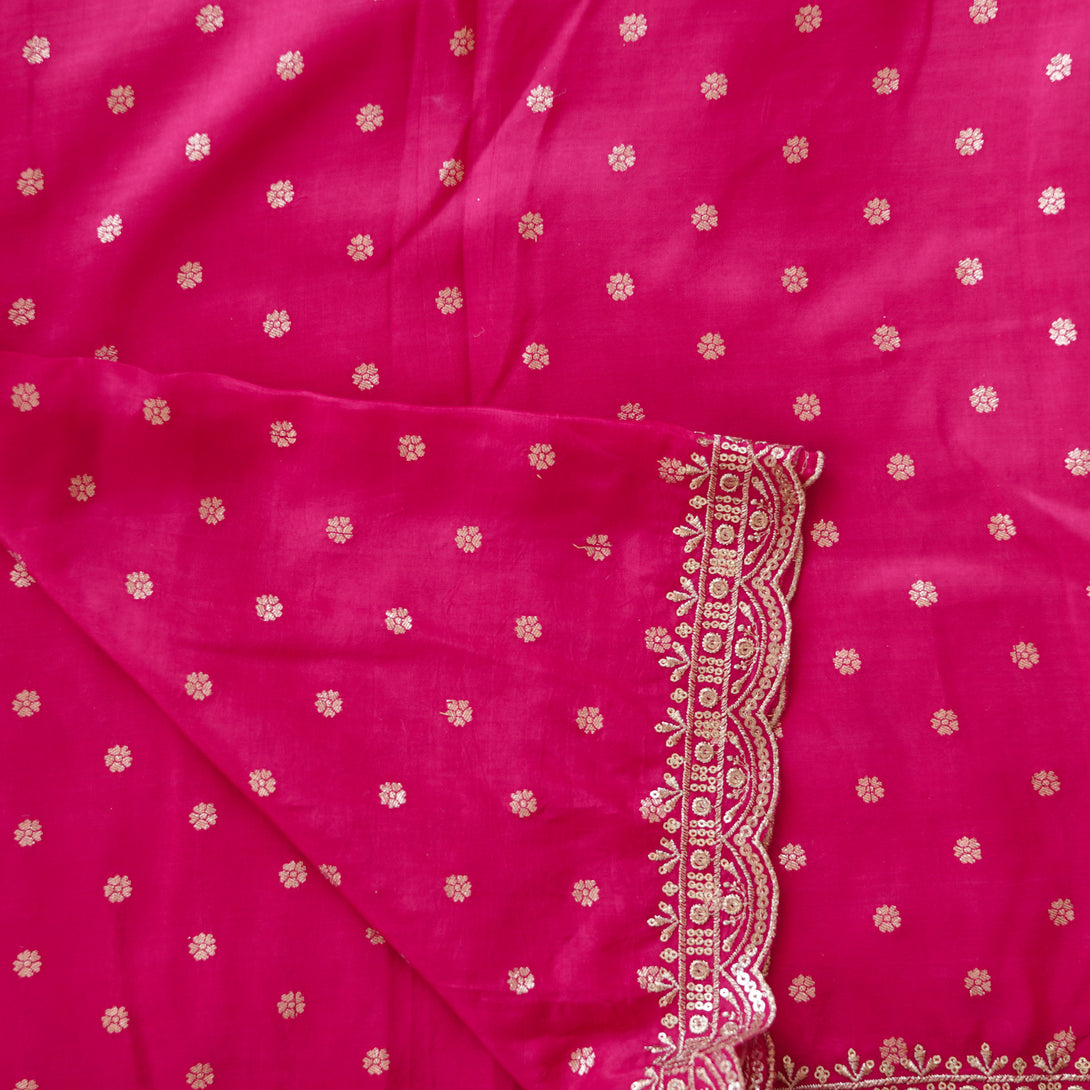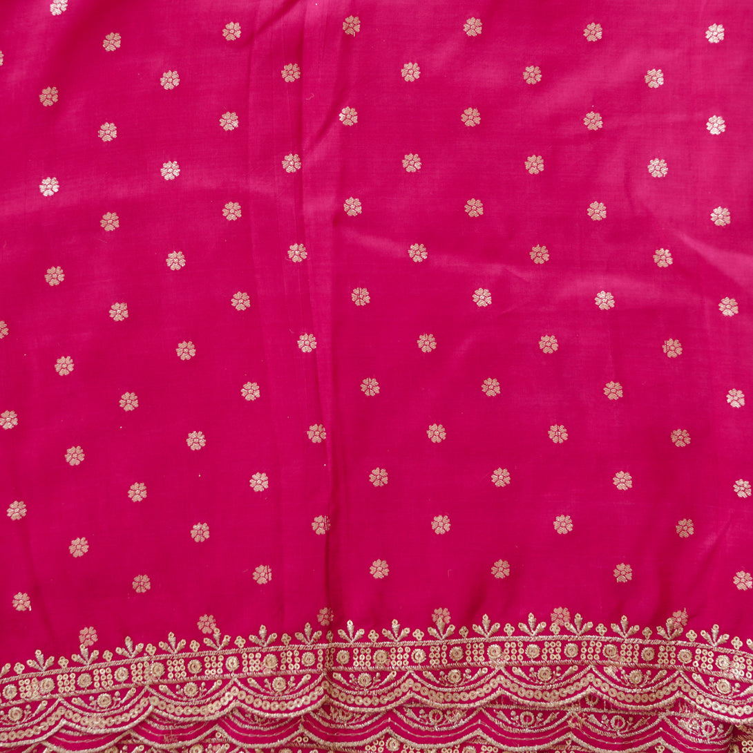 Dola Silk Brocade Pink With Golden Zari Flower Butti and Zari Embroidary Border Fabric
