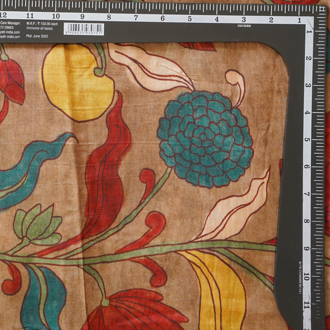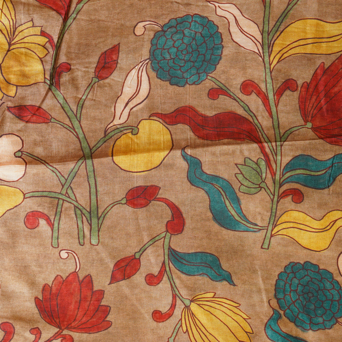 Dola Silk Kalamkari Digital Print Chiku With Flower Jaal Fabric