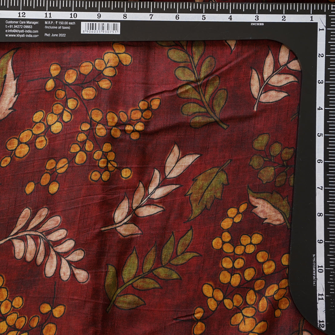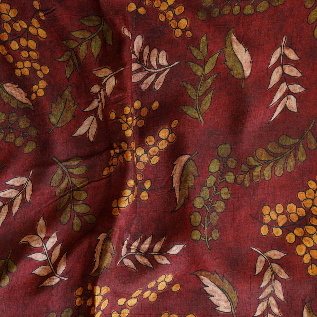 Dola Silk Kalamkari Digital Print Maroon With Leaves Fabric