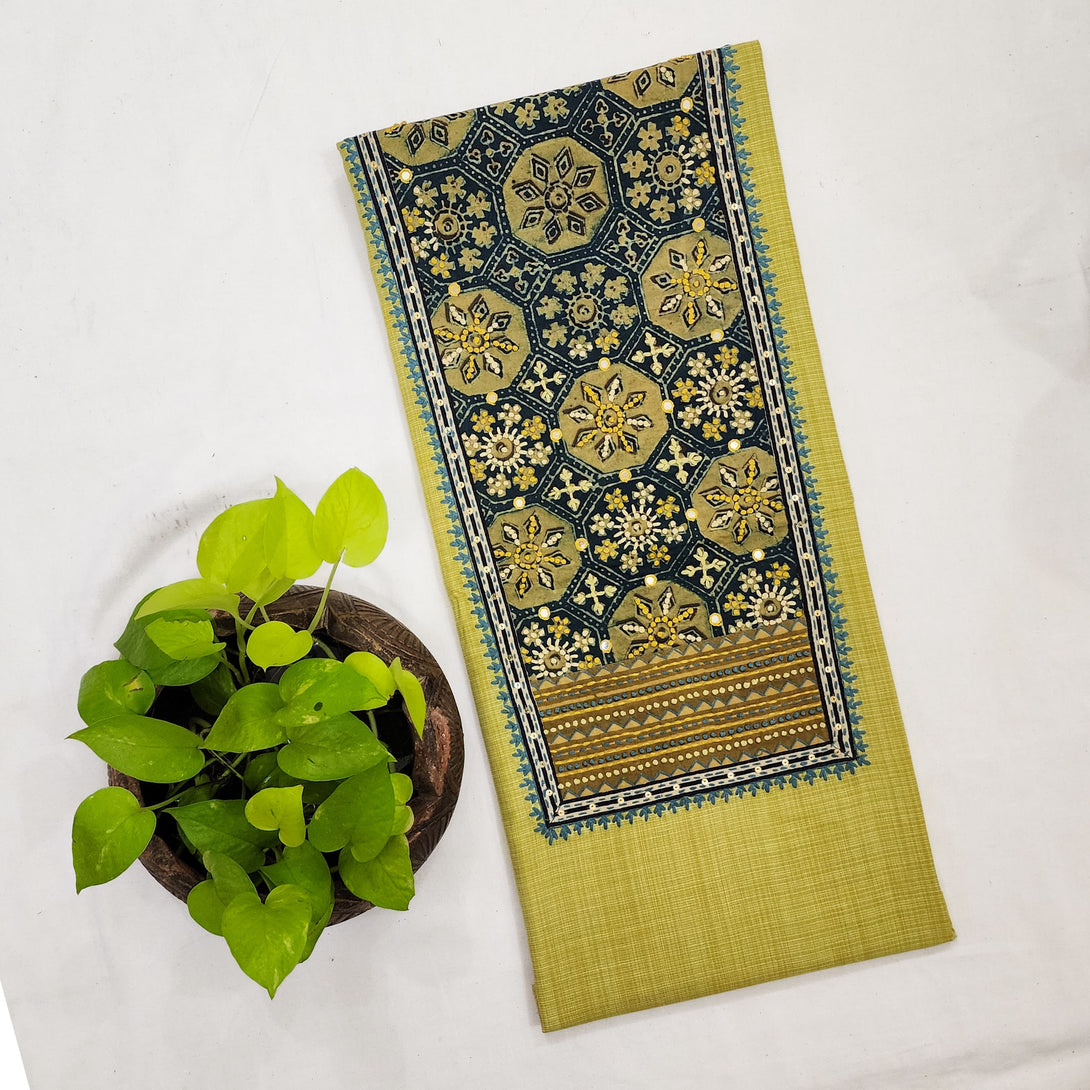 EKTA-Pure Cotton Handloom Light Green With Vanaspati Emboriderey Yoke Pre-Design Unstitched Kurta Fabric