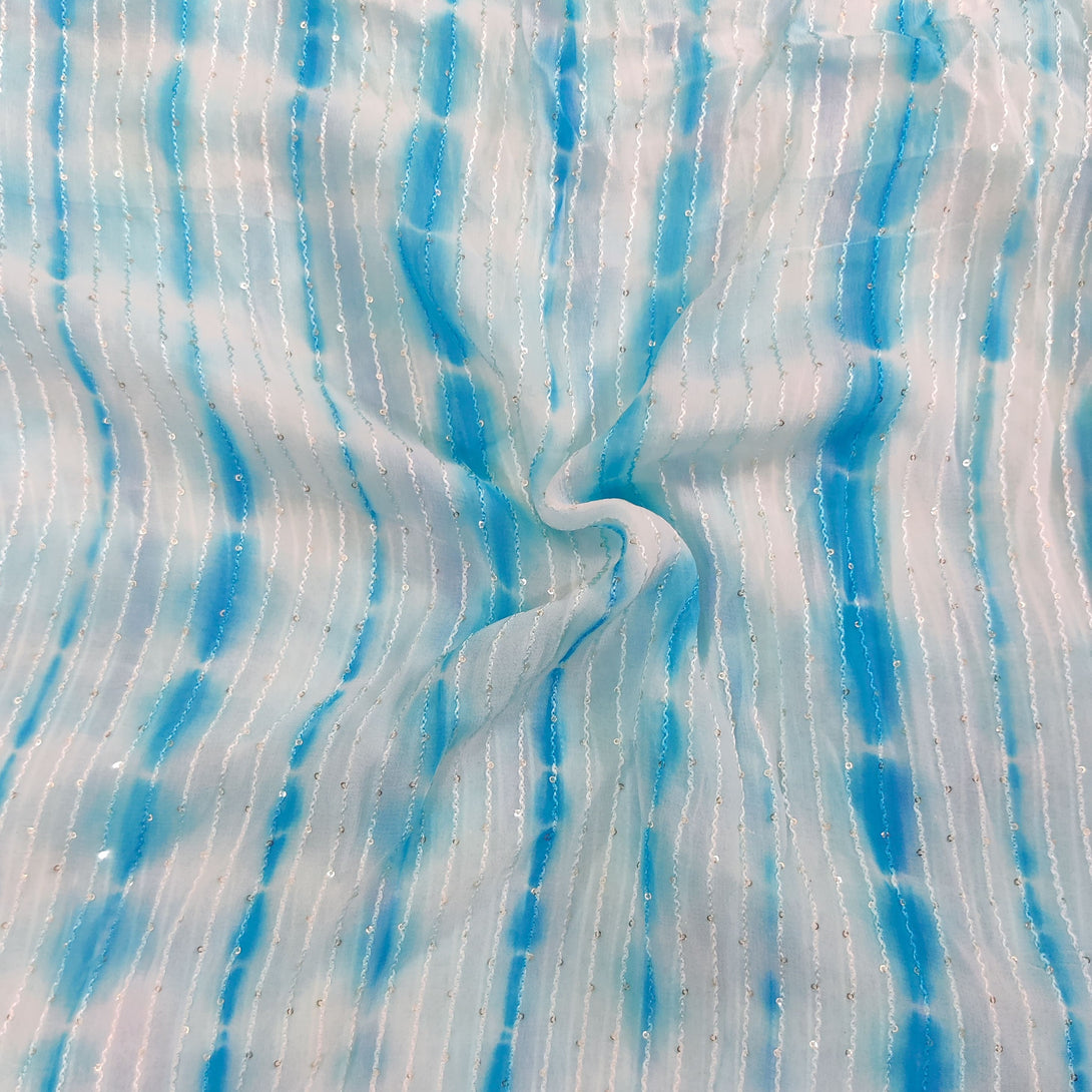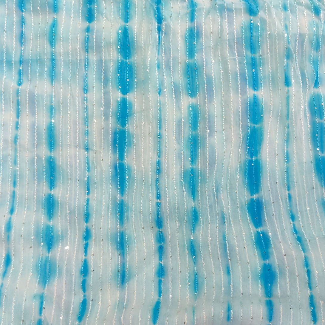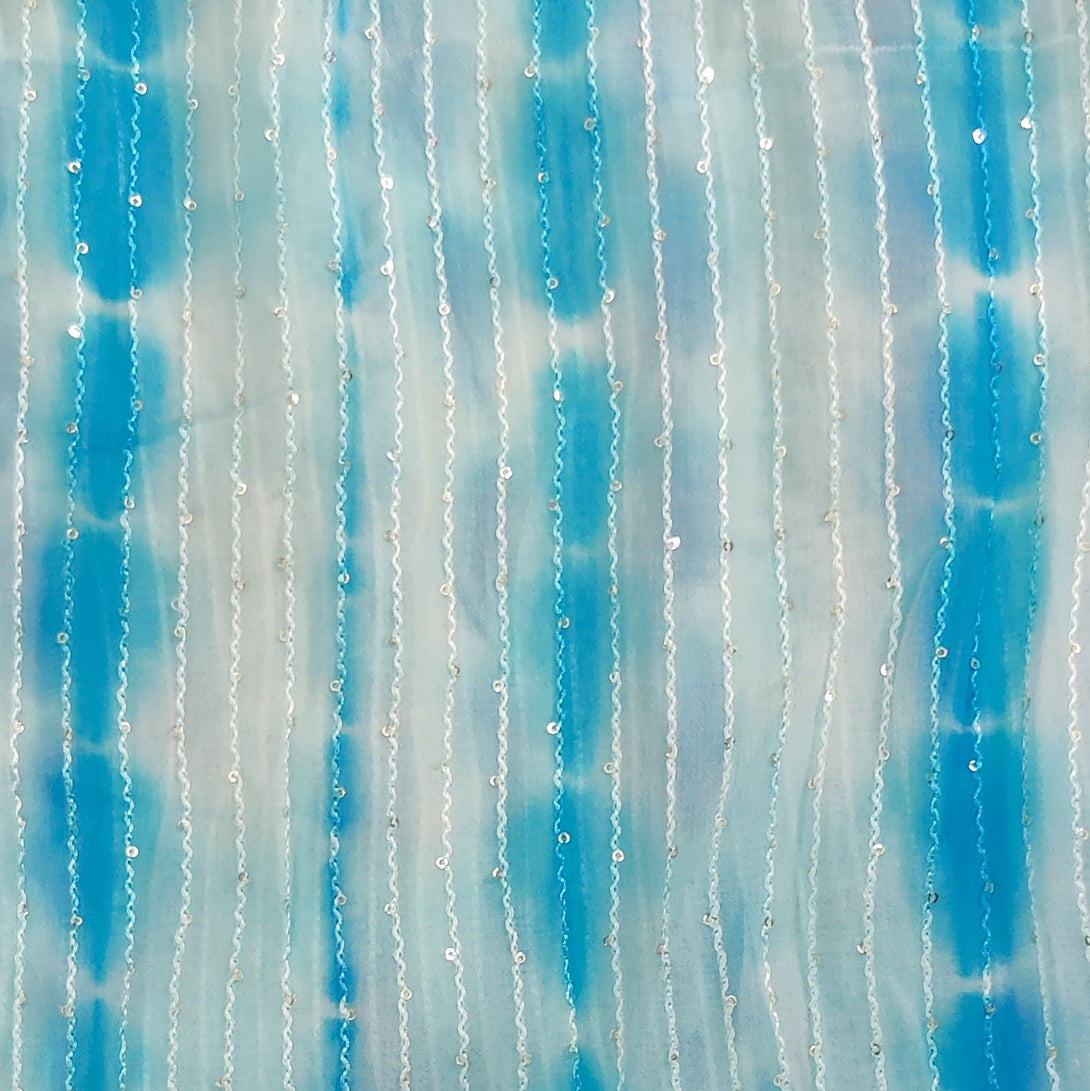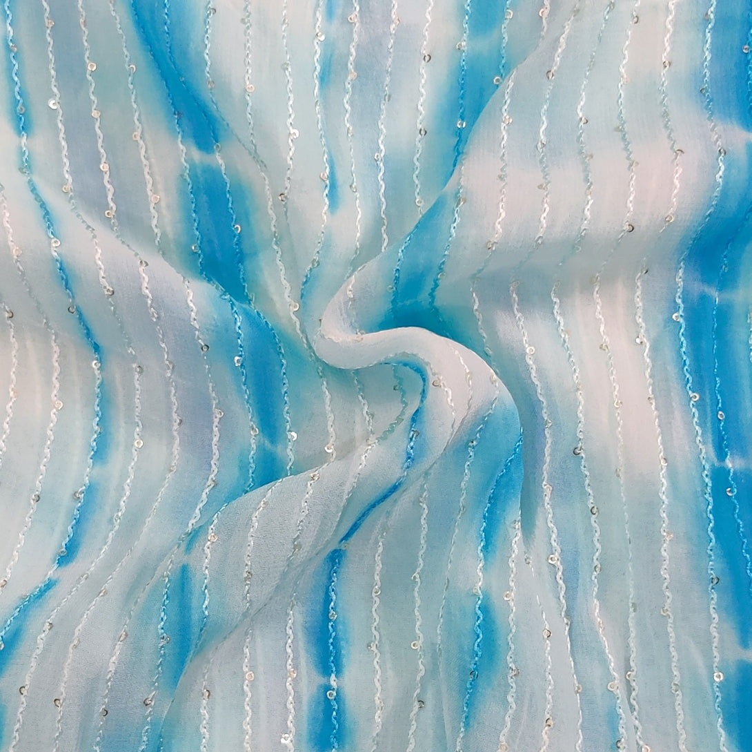Georgette Light Blue Shibori Kaatha Flowy Fabric