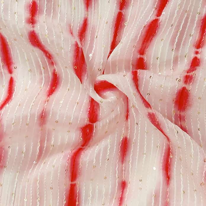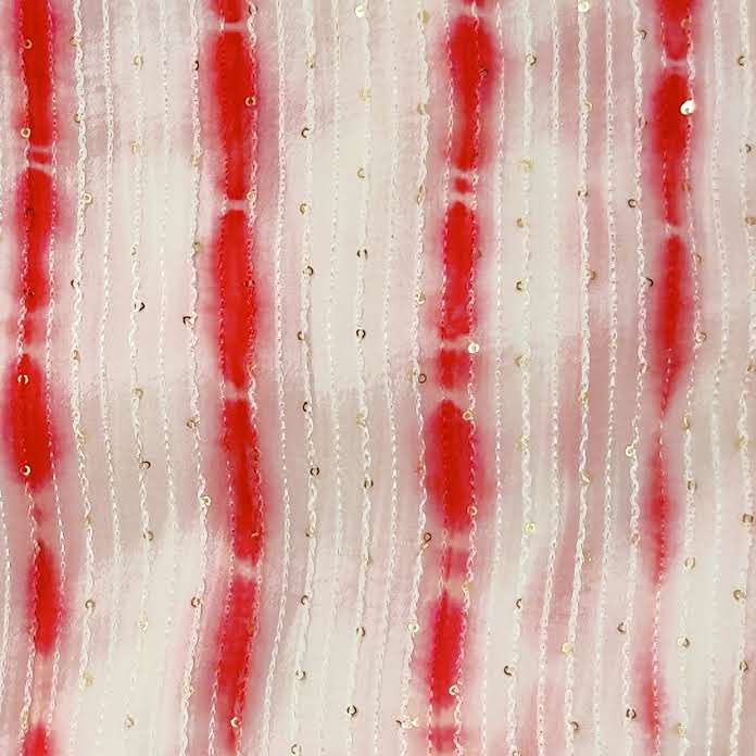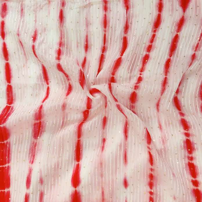Georgette Light Red Shibori Kaatha Flowy Fabric