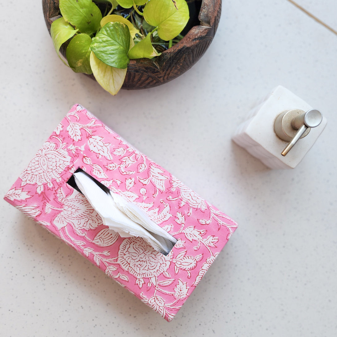 Handmade Jaipuri Pink With White Flower Jaal Tissue Box