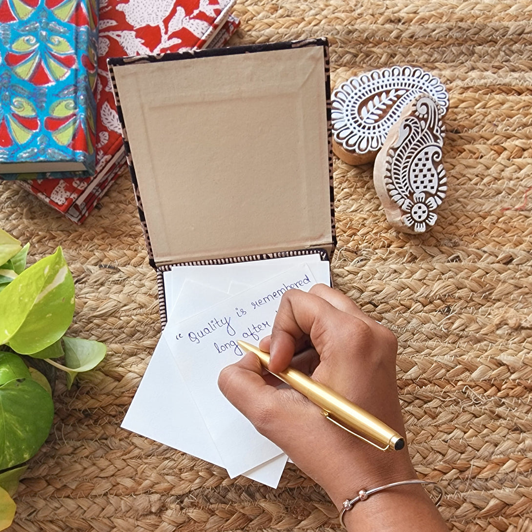 Note: Variation in color and patterns, irregularities in block prints are inherent characteristics of handloom products and are not defects. When a fabric is hand block printed or handwoven there will definitely be variations and irregularities due to dye consistency, pressure applied by block printers at the time of printing, various other environmental, situational and human factors. Handblock / Handloom / Hand dyed products are all 100% handmade, each and every block is hand printed by our artisan one at a time