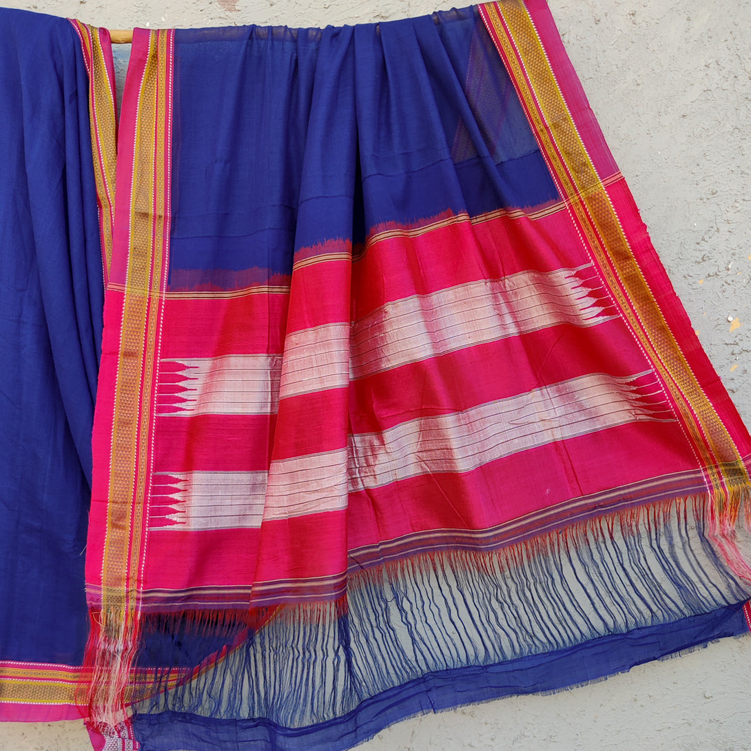 Ilkal - Pure Cotton Traditional Ilkal Saree Blue With Pink