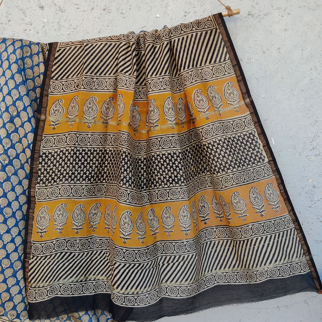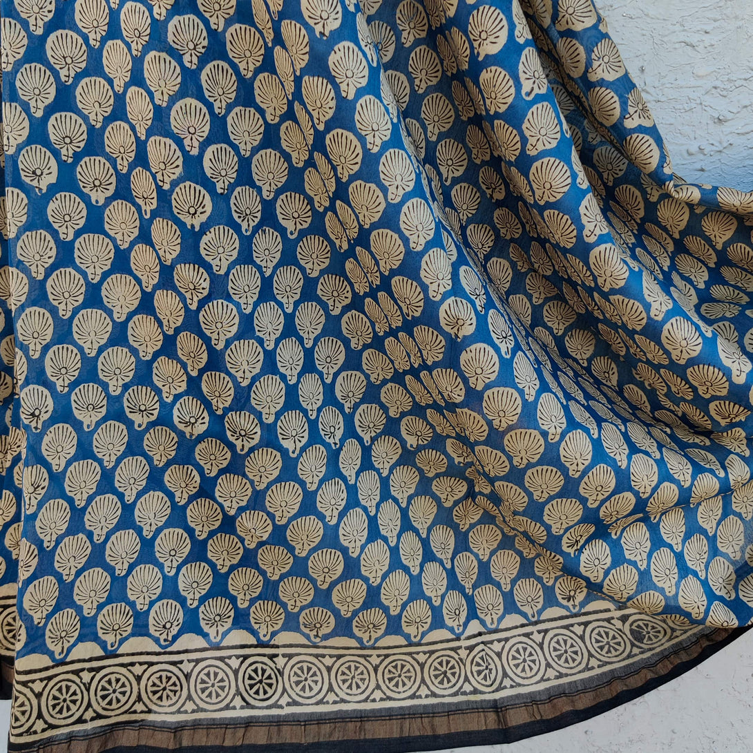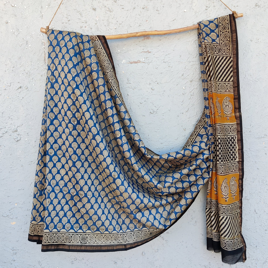 KASTURI - Pure Chanderi Bagru Blue Hand Block Printed Saree