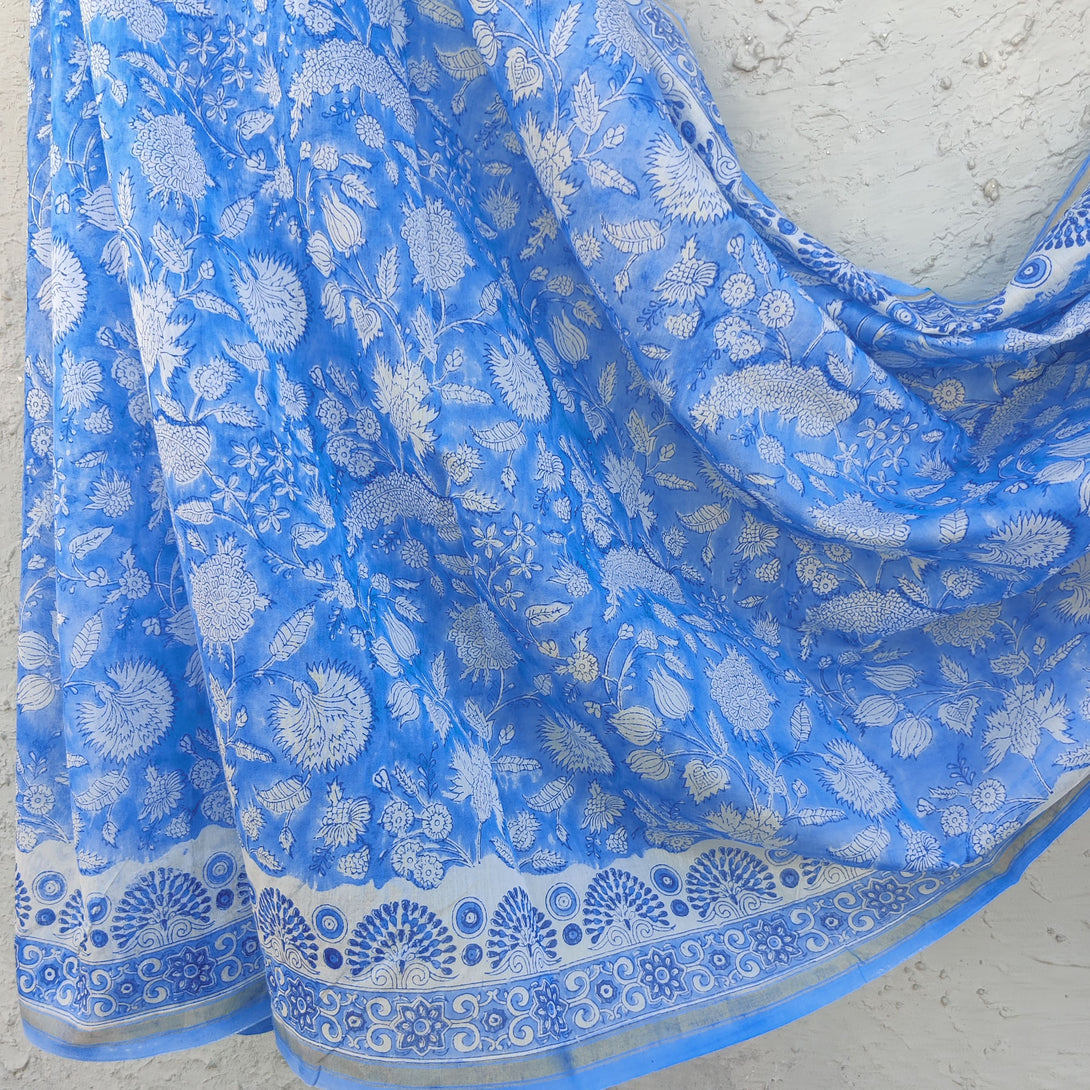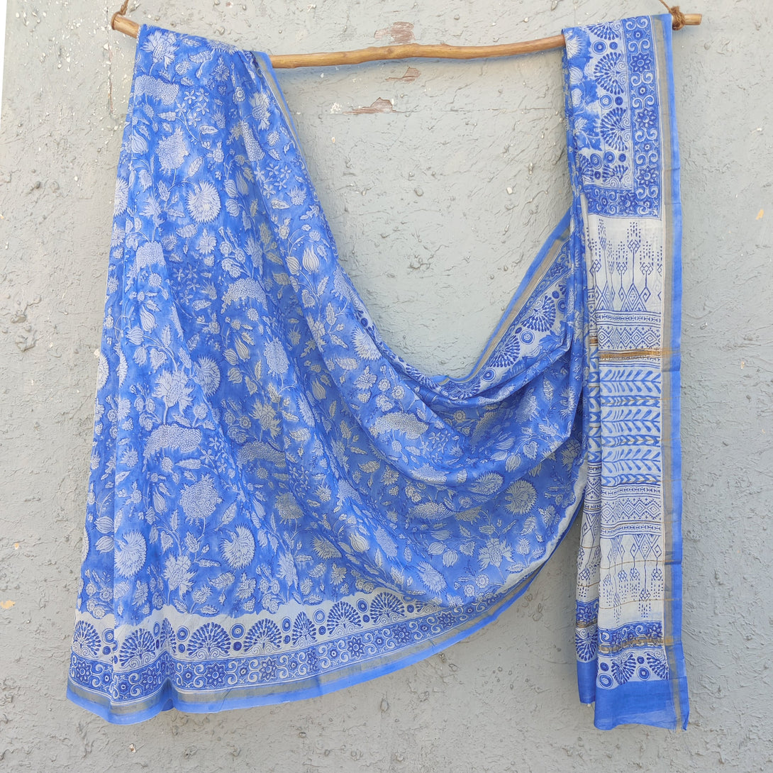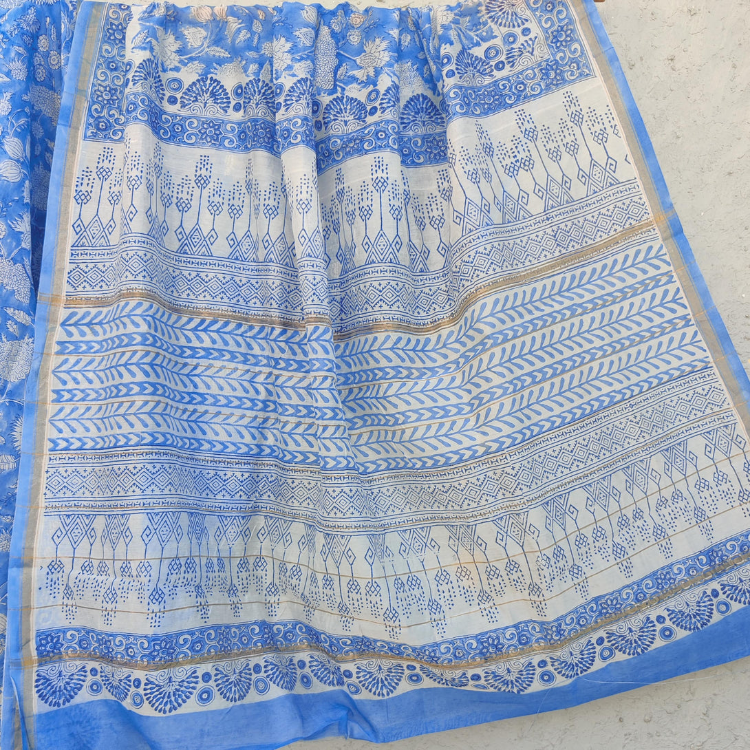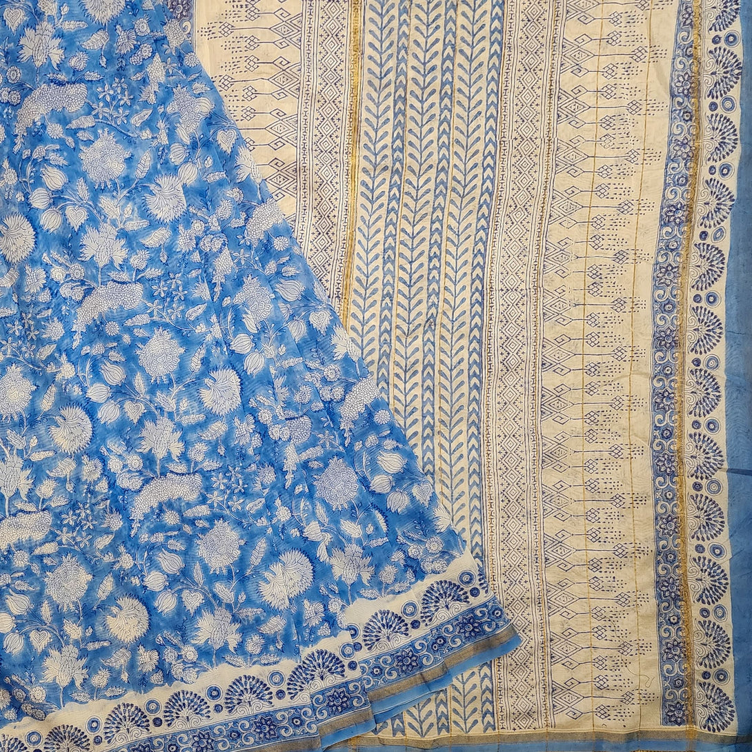 KASTURI - Pure Chanderi Jaipuri Blue Peacock Jaal Saree