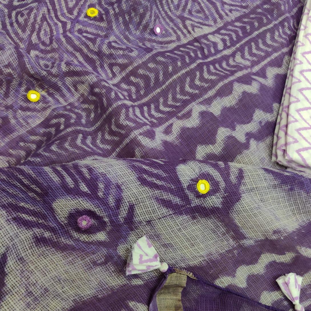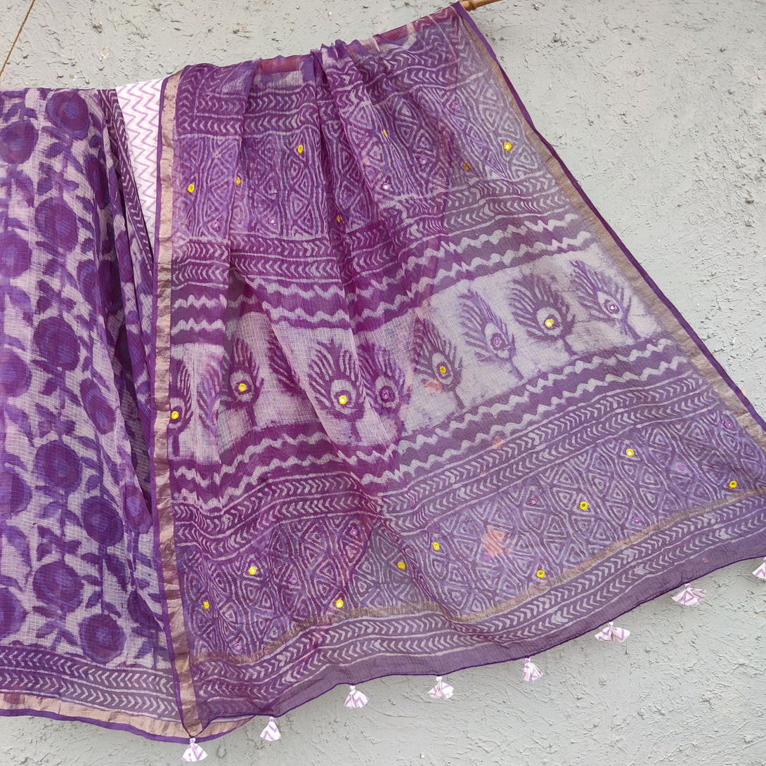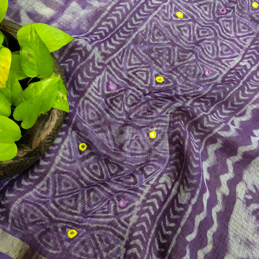KOTA QUEEN - Pure Cotton Kota Saree With Mirror Embellished Pallu And A Contrast Blouse Purple Saree With White And Purple Blouse