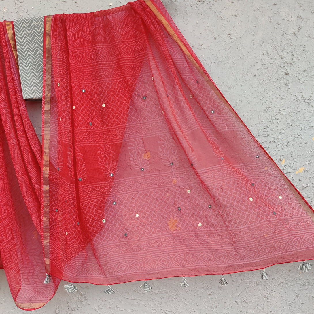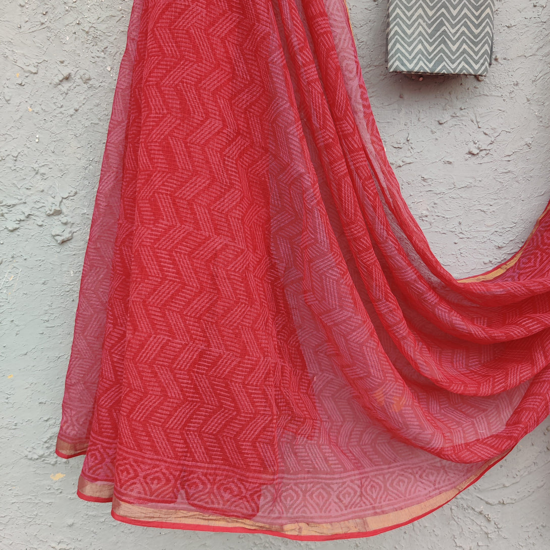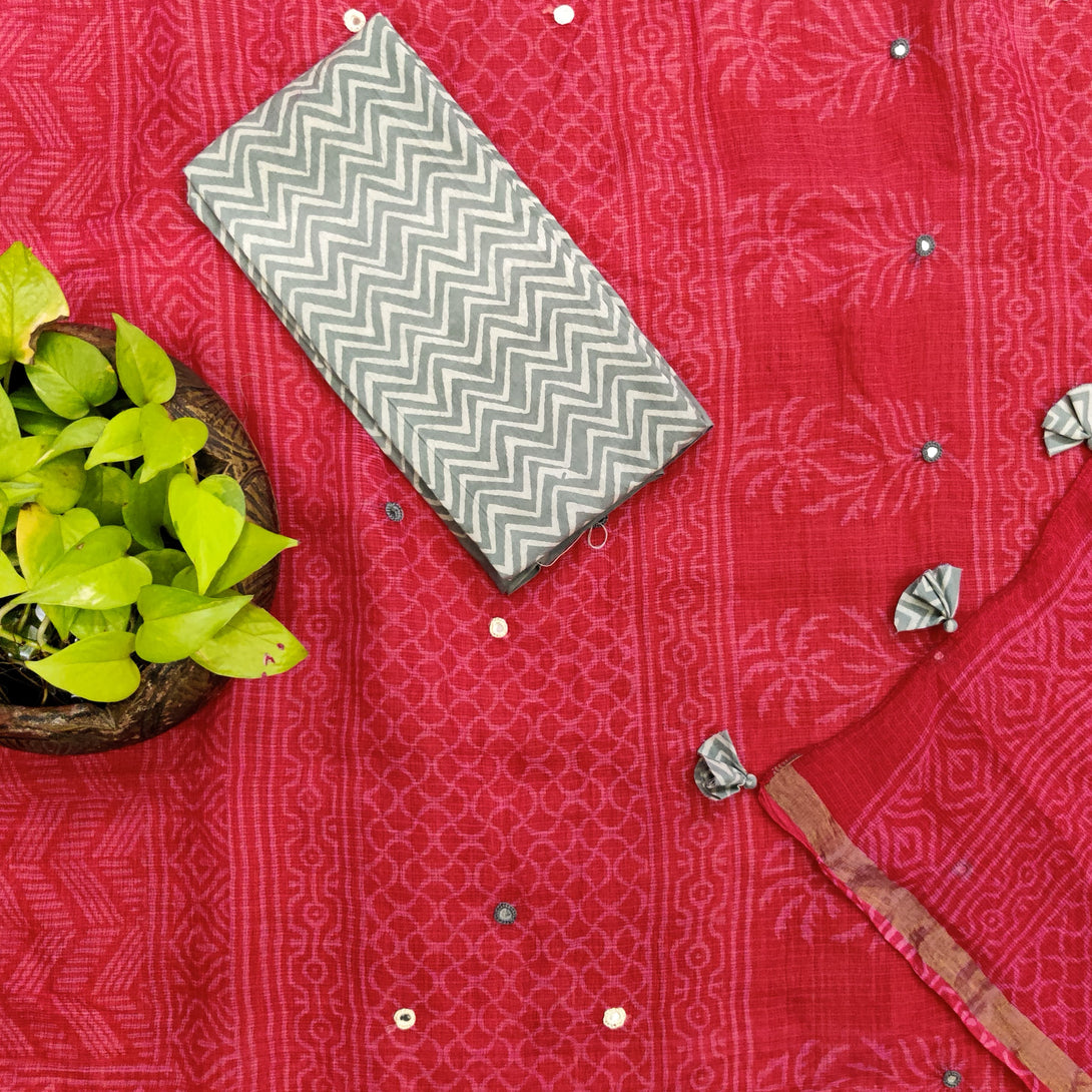 KOTA QUEEN - Pure Cotton Kota Saree With Mirror Embellished Pallu And A Contrast Blouse Reddish Pinkish Saree With Kashish Blouse