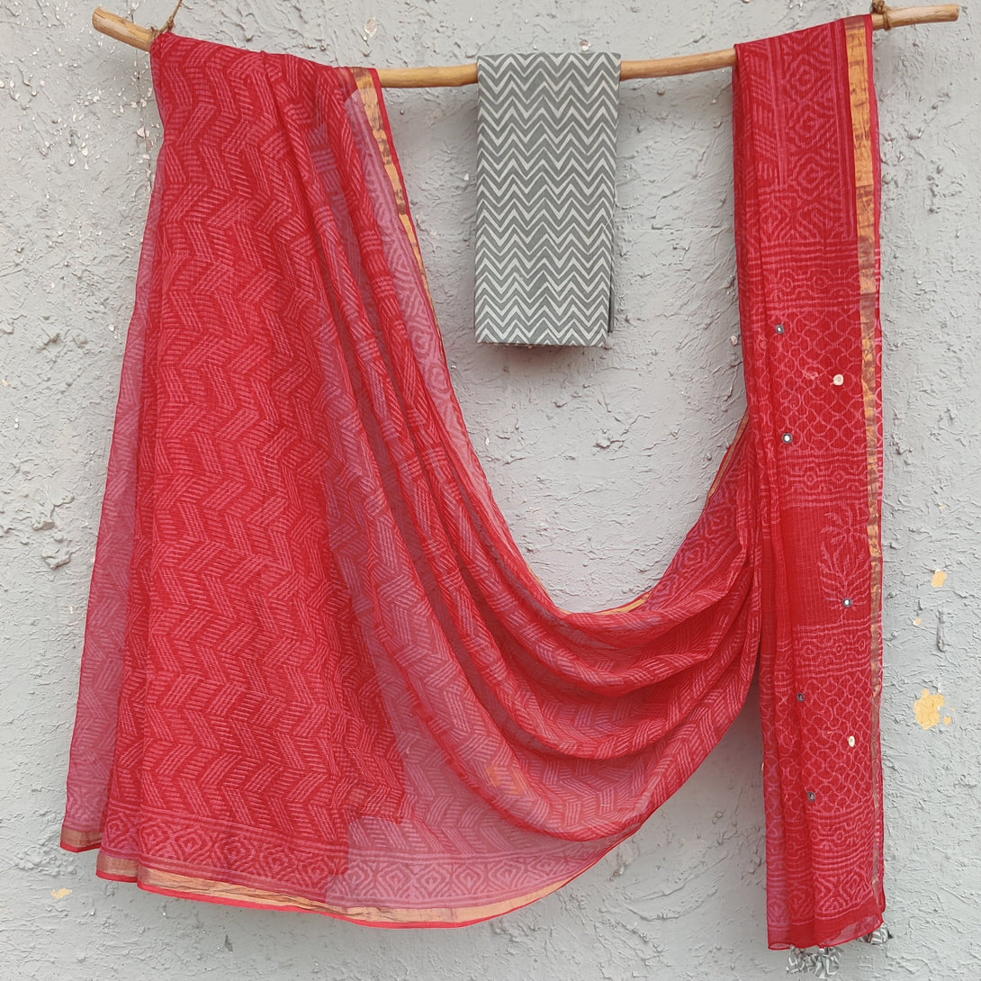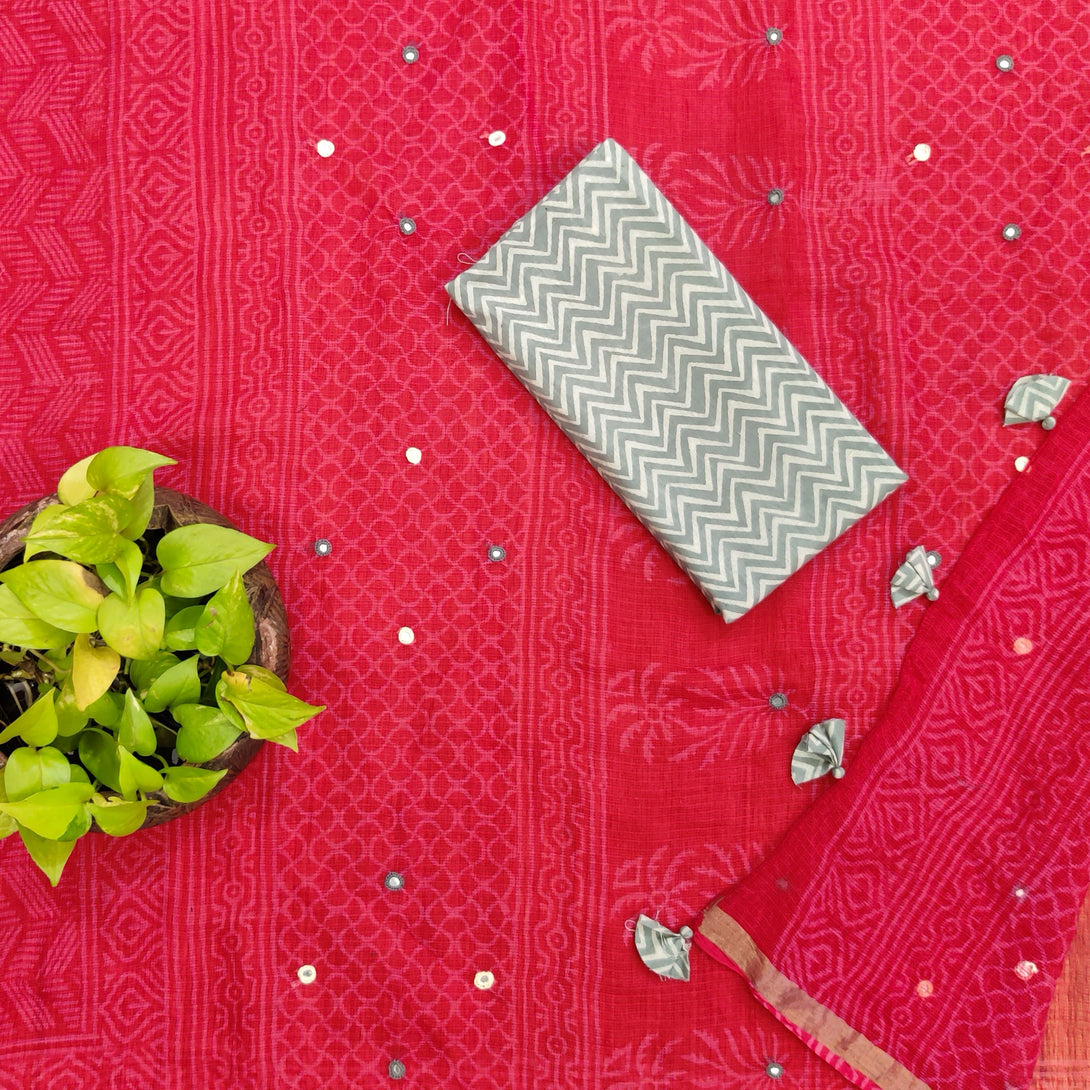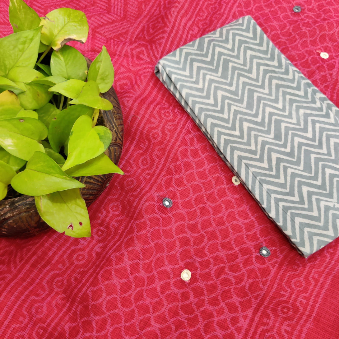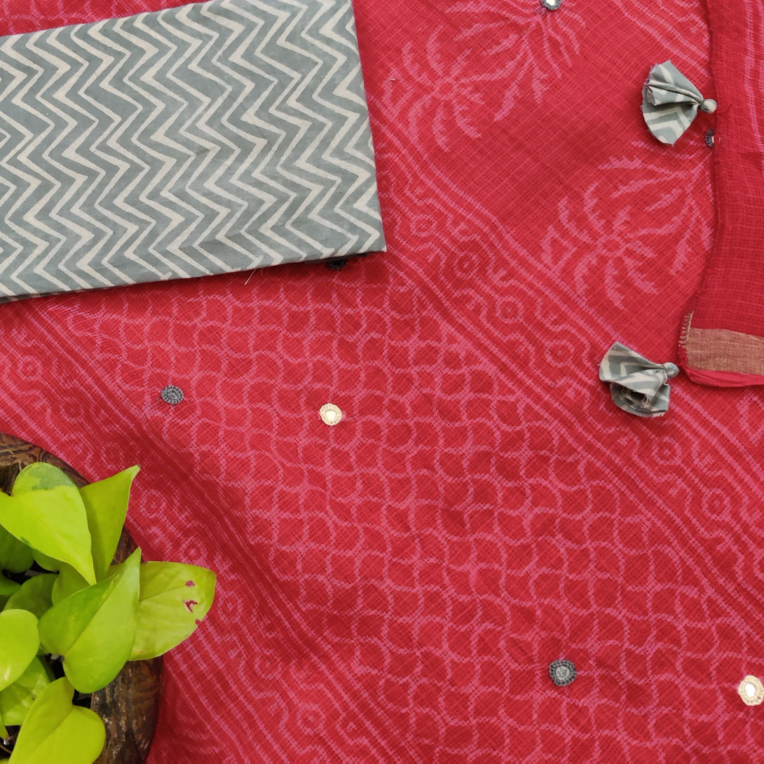 KOTA QUEEN - Pure Cotton Kota Saree With Mirror Embellished Pallu And A Contrast Blouse Reddish Pinkish Saree With Kashish Blouse