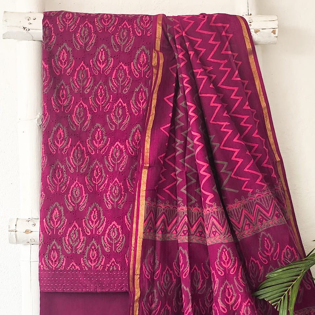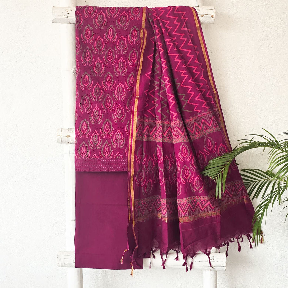 KRUTIKA- Pure Cotton Hakoba Magenta With Design Motif Suit