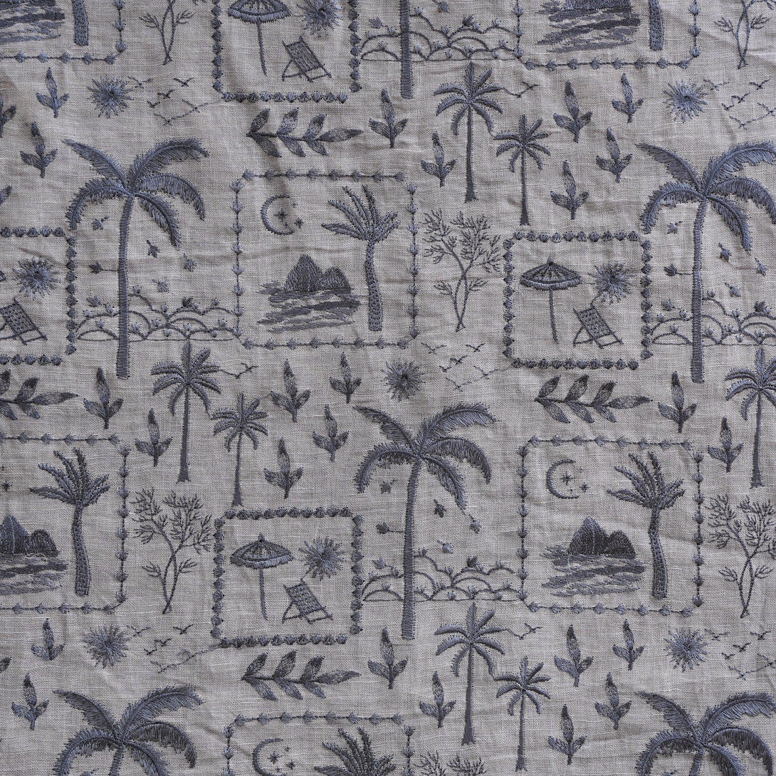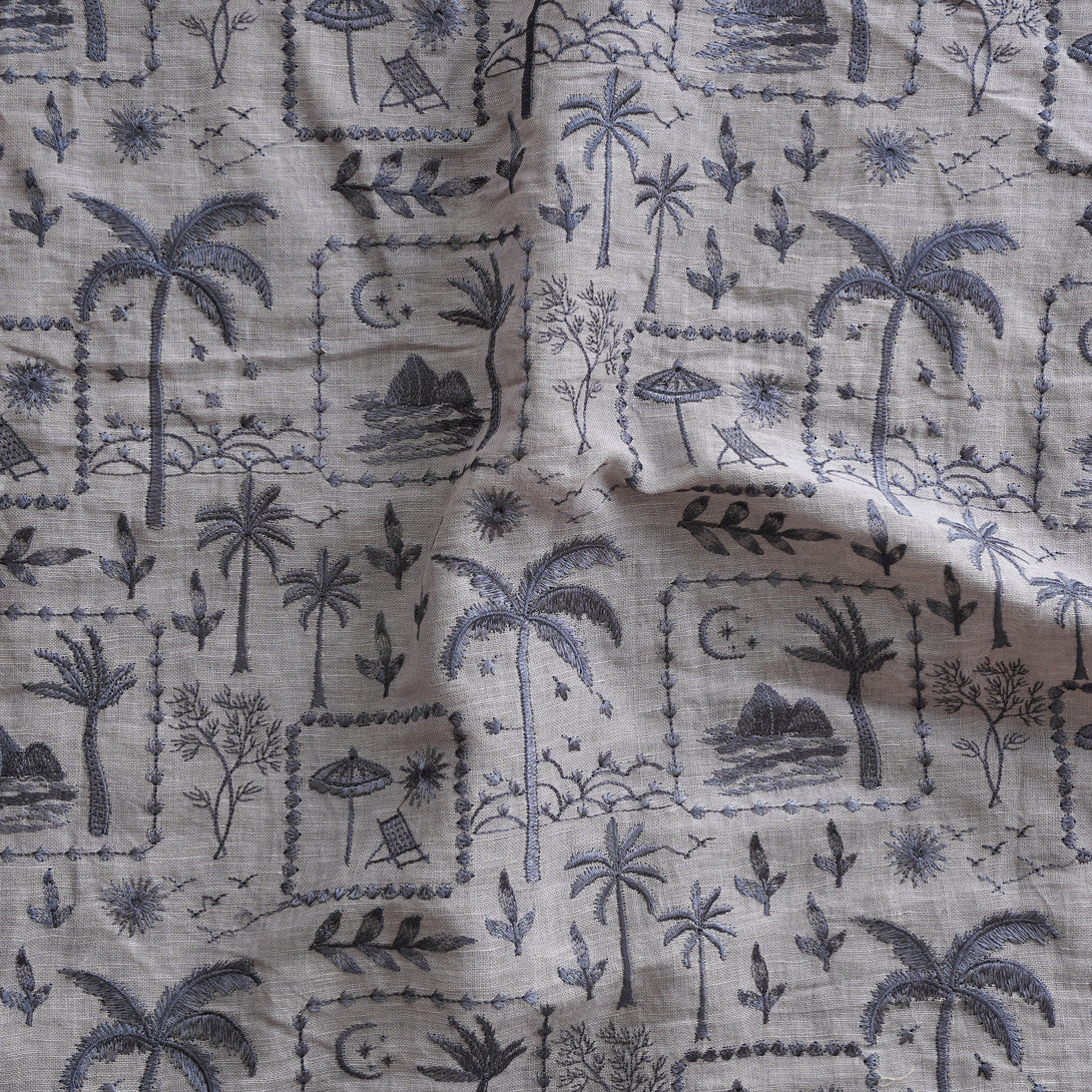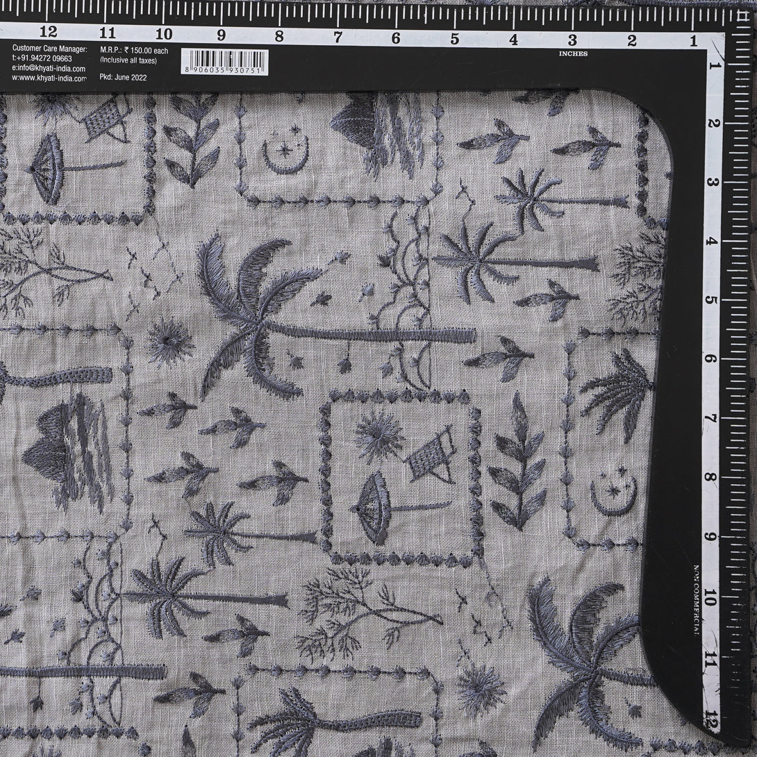 Linen Grey With Scenery View Embroidery Fabric