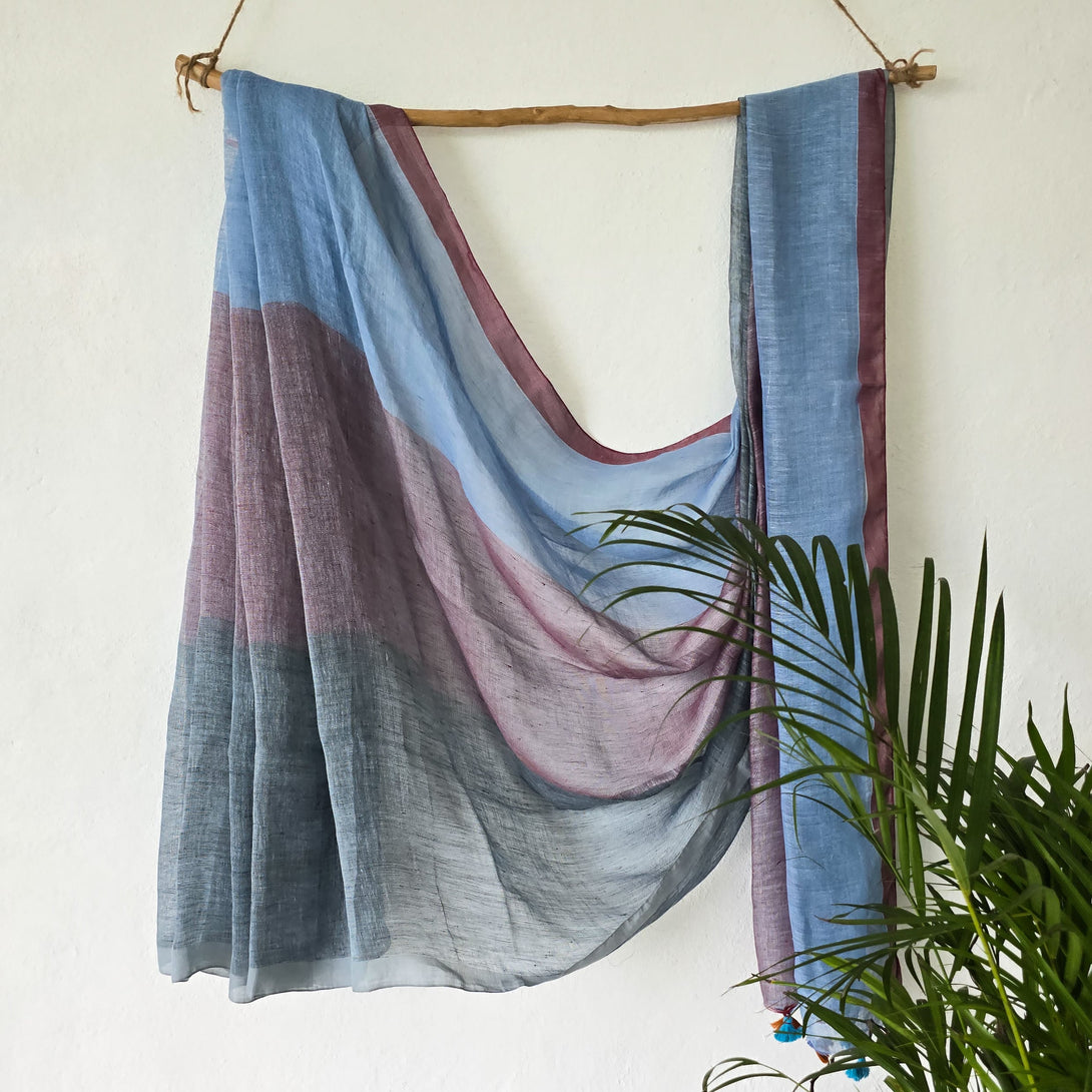 LINEN QUEEN-Three Shades Of Blue And Grey And Purple Linen Saree