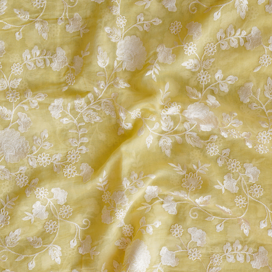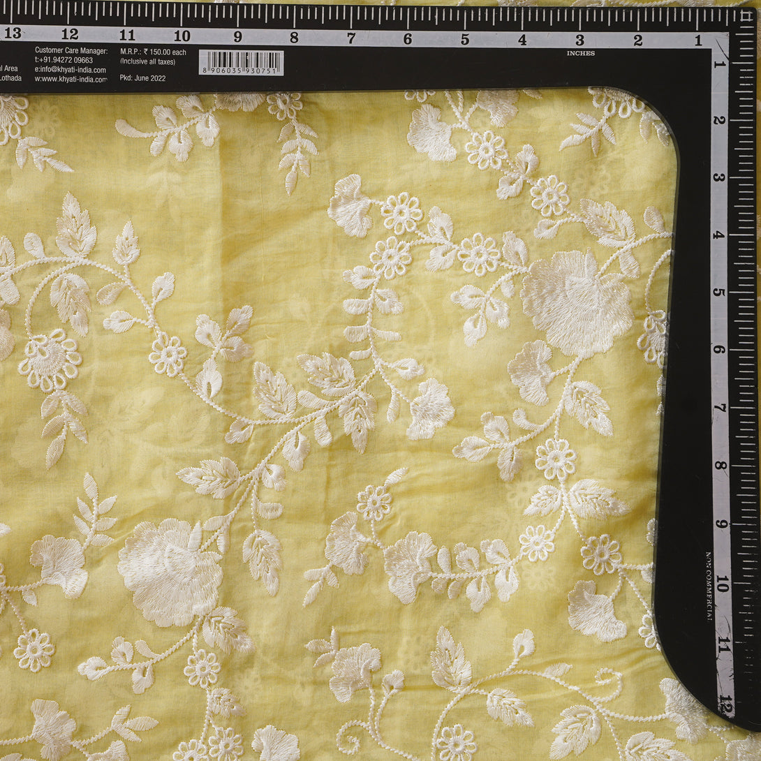 Mul Chanderi Pastel Yellow With Flower Jaal Embroidery Fabric
