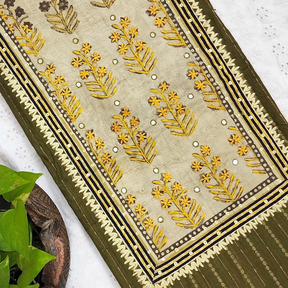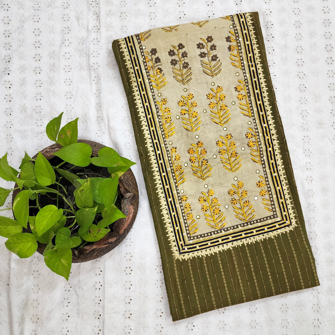 MWNAKA-Pure Cotton Handloom Green With Intricate Yoke Pre Designed Unstitched Kurta Fabric
