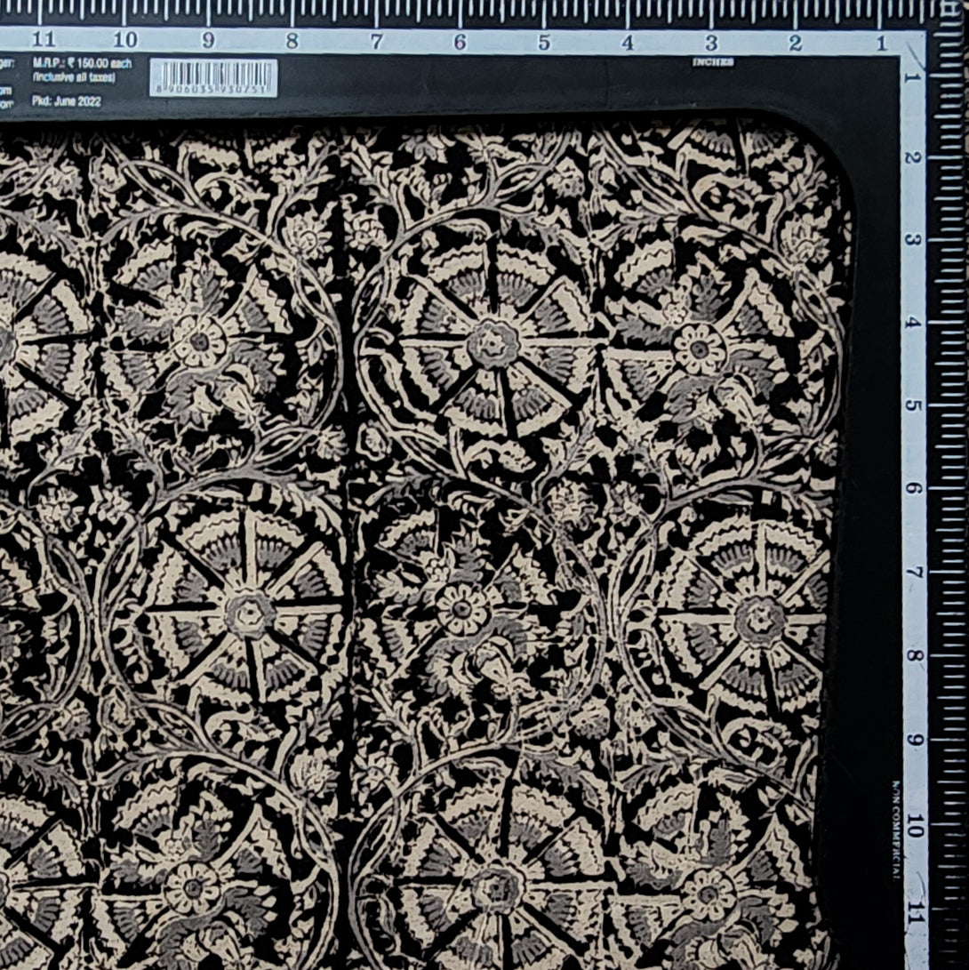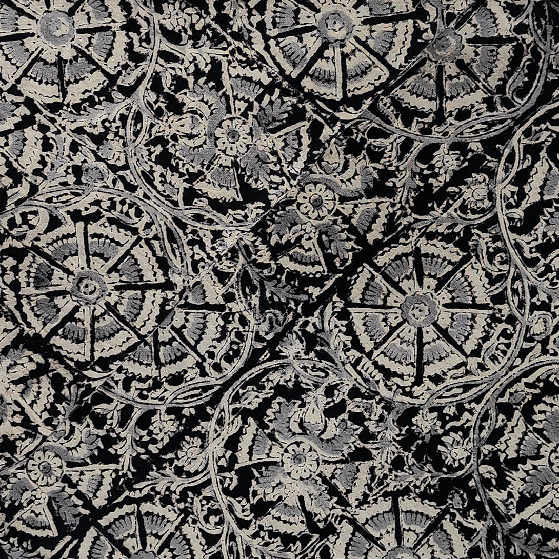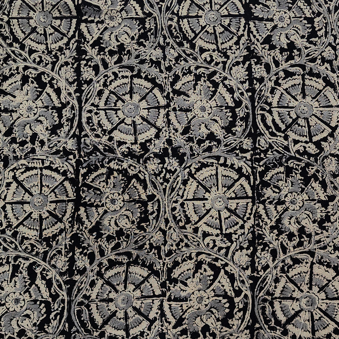 New Pure Cotton Kalamkari Black With Cream Wild Flower Jaal Hand Block Print Fabric