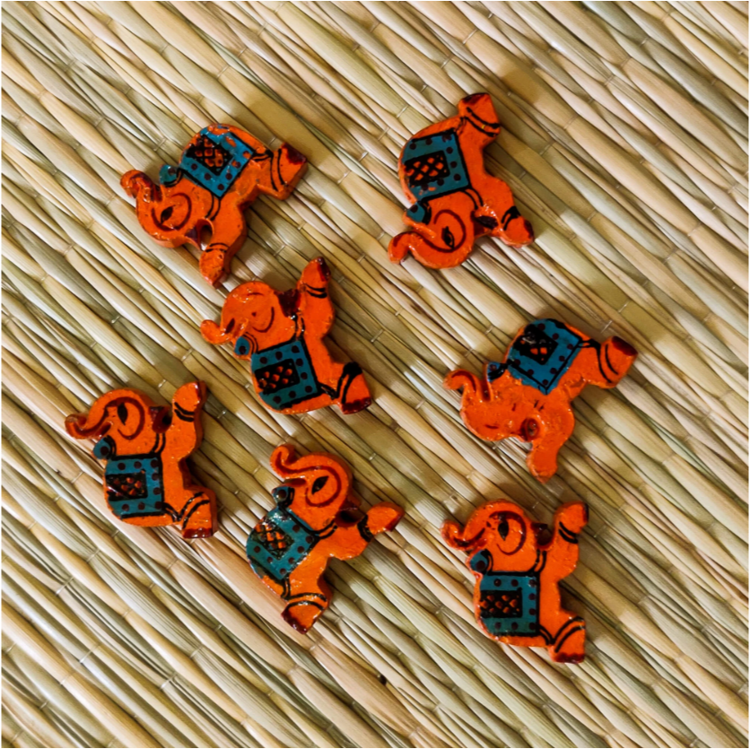Orange Elephant Wooden Button