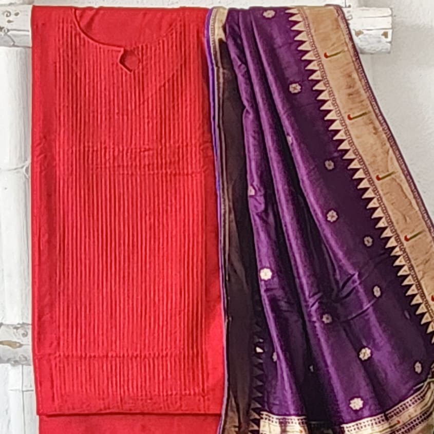 PAITHANI- Pintucks Cotton Silk Red With Purple Paithani Dupatta Suit