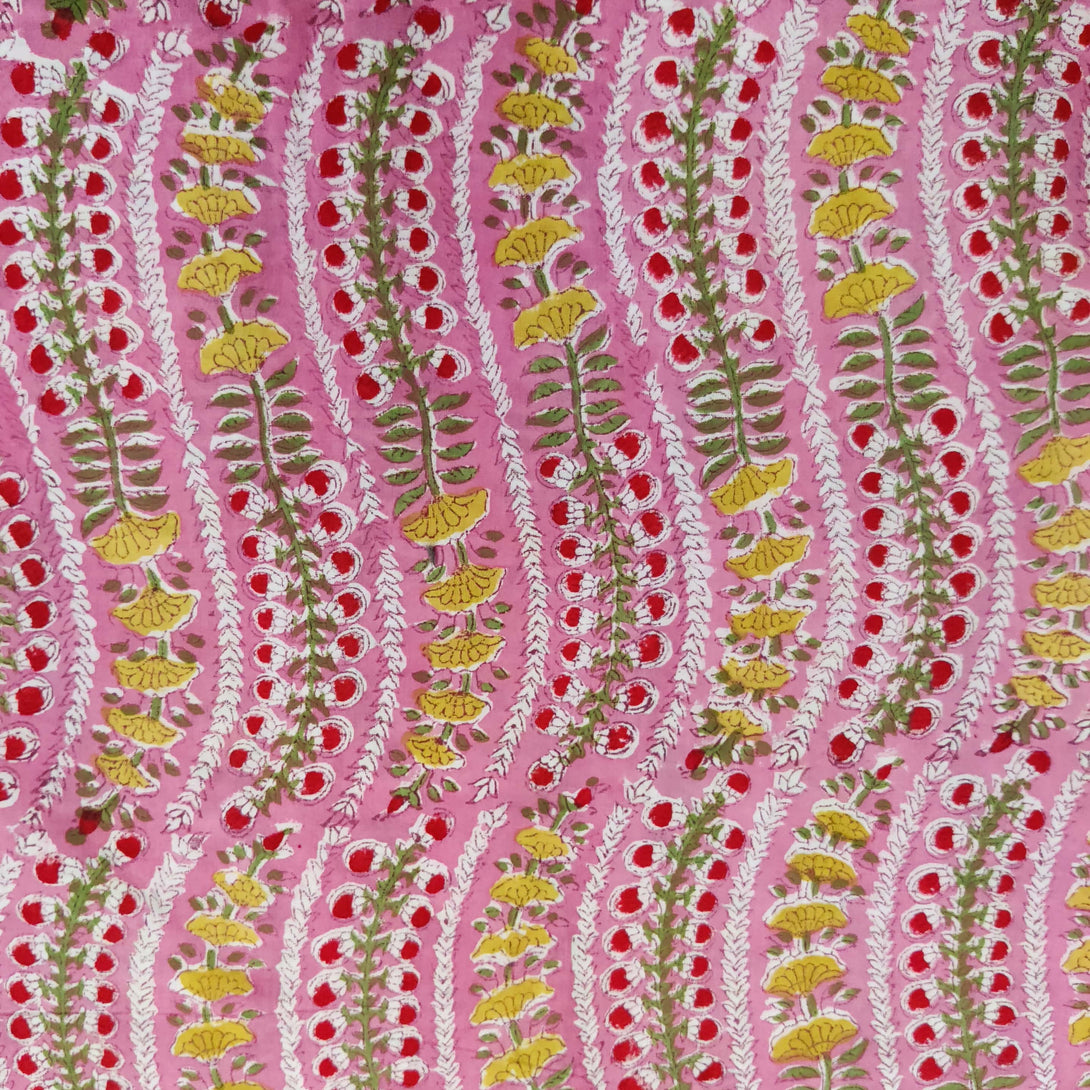 Per-Cut 1.50 Meter Pure Cotton Jaipuri Pink With Wavy French Floral Creeper Hand Block Print Fabric