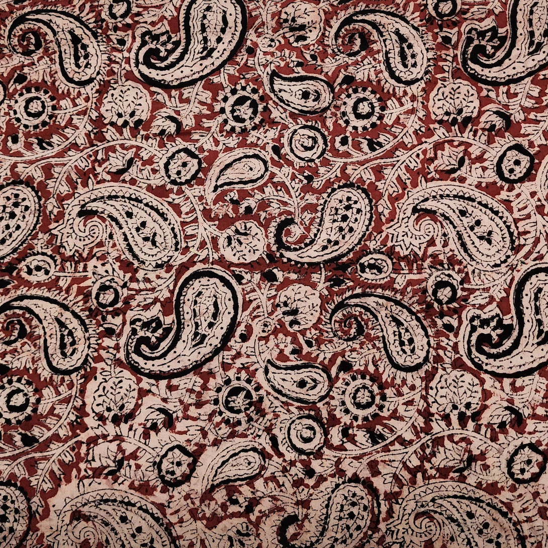 Per Cut (1.92 Meter) Pure Cotton Kalamkari Rust Red And Black Kairi Jaal Hand Block Print Fabric