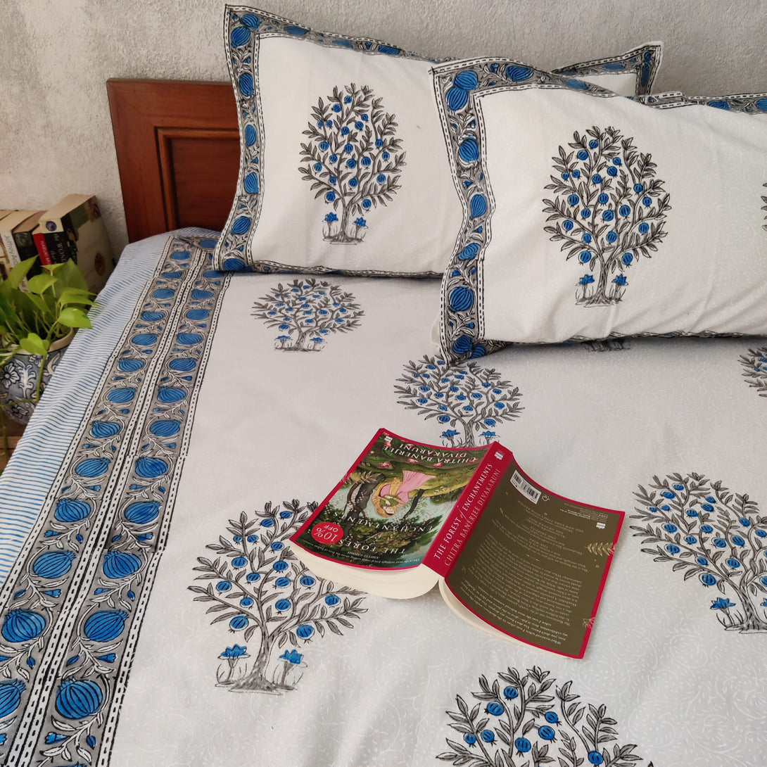 Pomogranate Pure Cotton Jaipuri Double Bedsheet