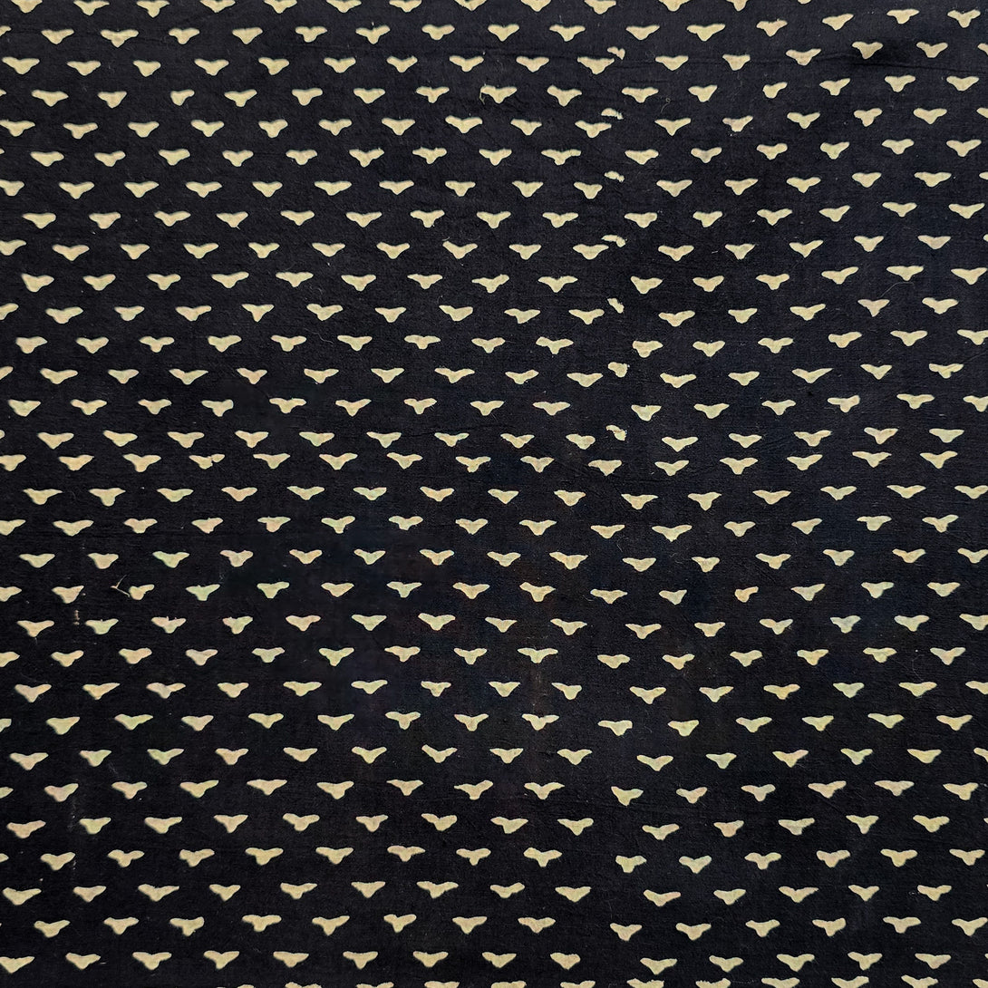 (Pre-Cut 0.80 Meter) Pure Cotton Ajrak Black With Cream Tiny Arrow Motifs Hand Block Print Fabric