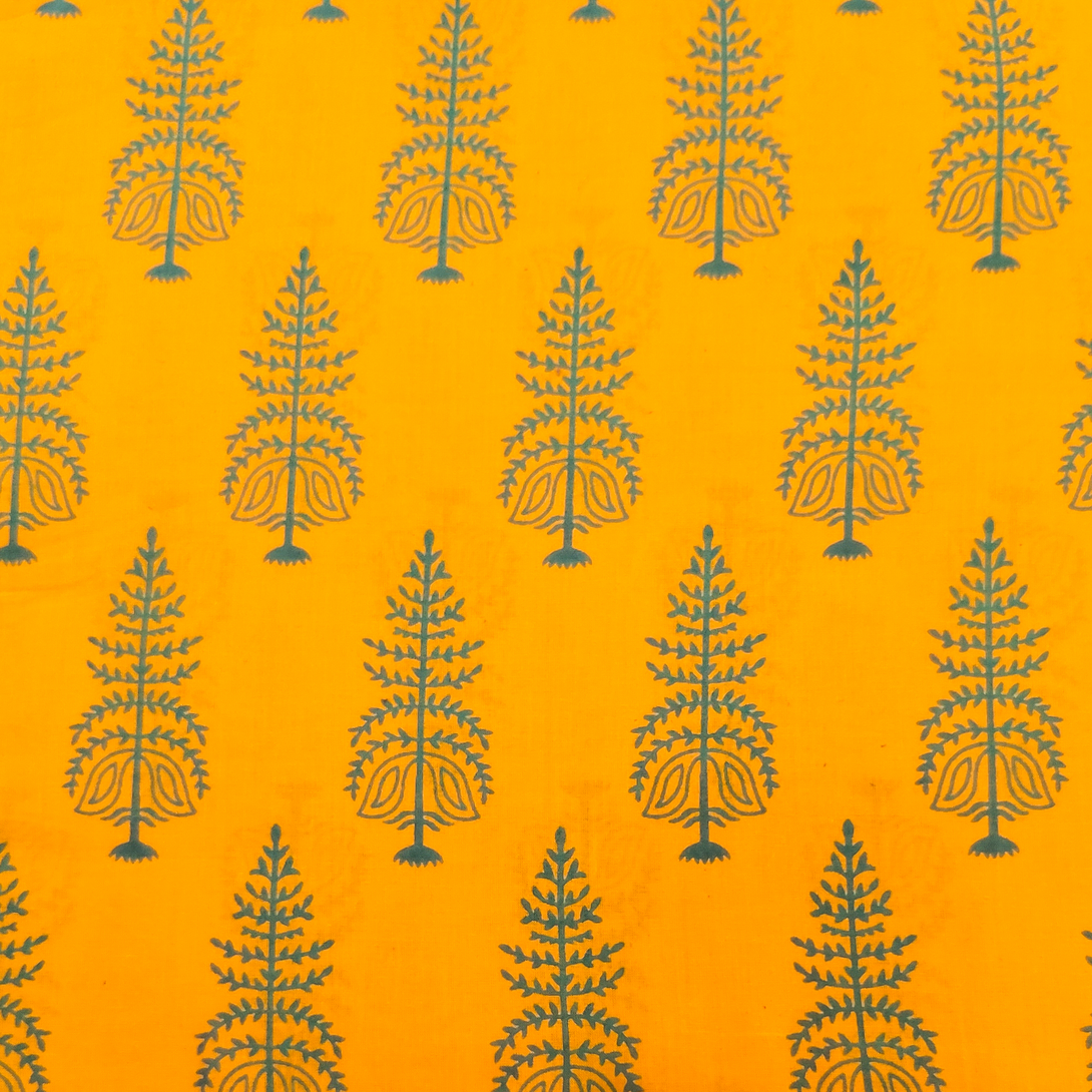 PRE-CUT 0.85 METER Pure Cotton Discharge Dabu Yellow With Grey Indian Tree Block Hand Block Print Fabric