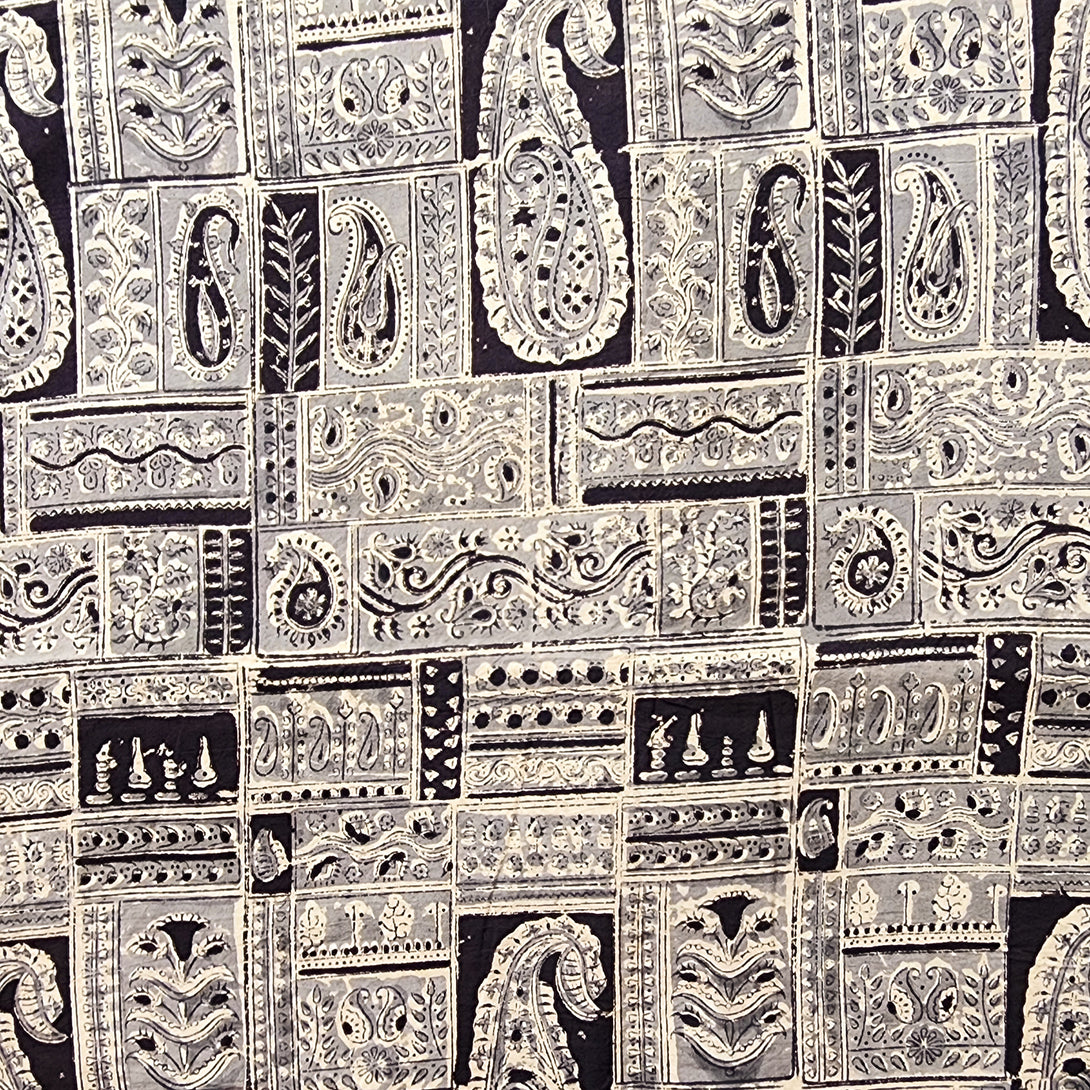 (PRE-CUT 1.20 METER) Modal Kalamkari Grey With Black Kairi Tile Hand Block Print Fabric