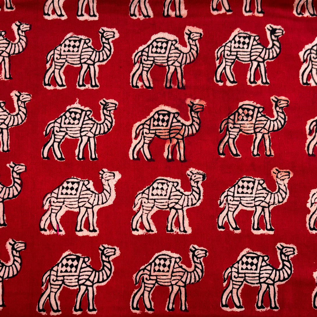 ( PRE-CUT 1.30 CM ) Pure Cotton Bagru Red With Cream Cemal Motif Hand Block Print Fabric