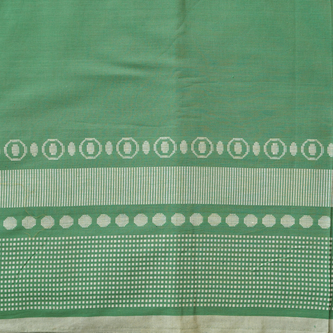 (PRE-CUT 1.30 METER) Pure Cotton Handloom Green with Big Border Design woven Fabric
