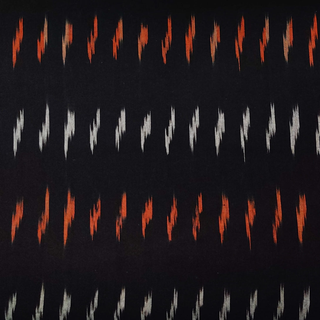 PRE-CUT 1.30 METER Pure Cotton Ikkat Black With Red Mustard Blue Thunder Weaves Woven Fabric