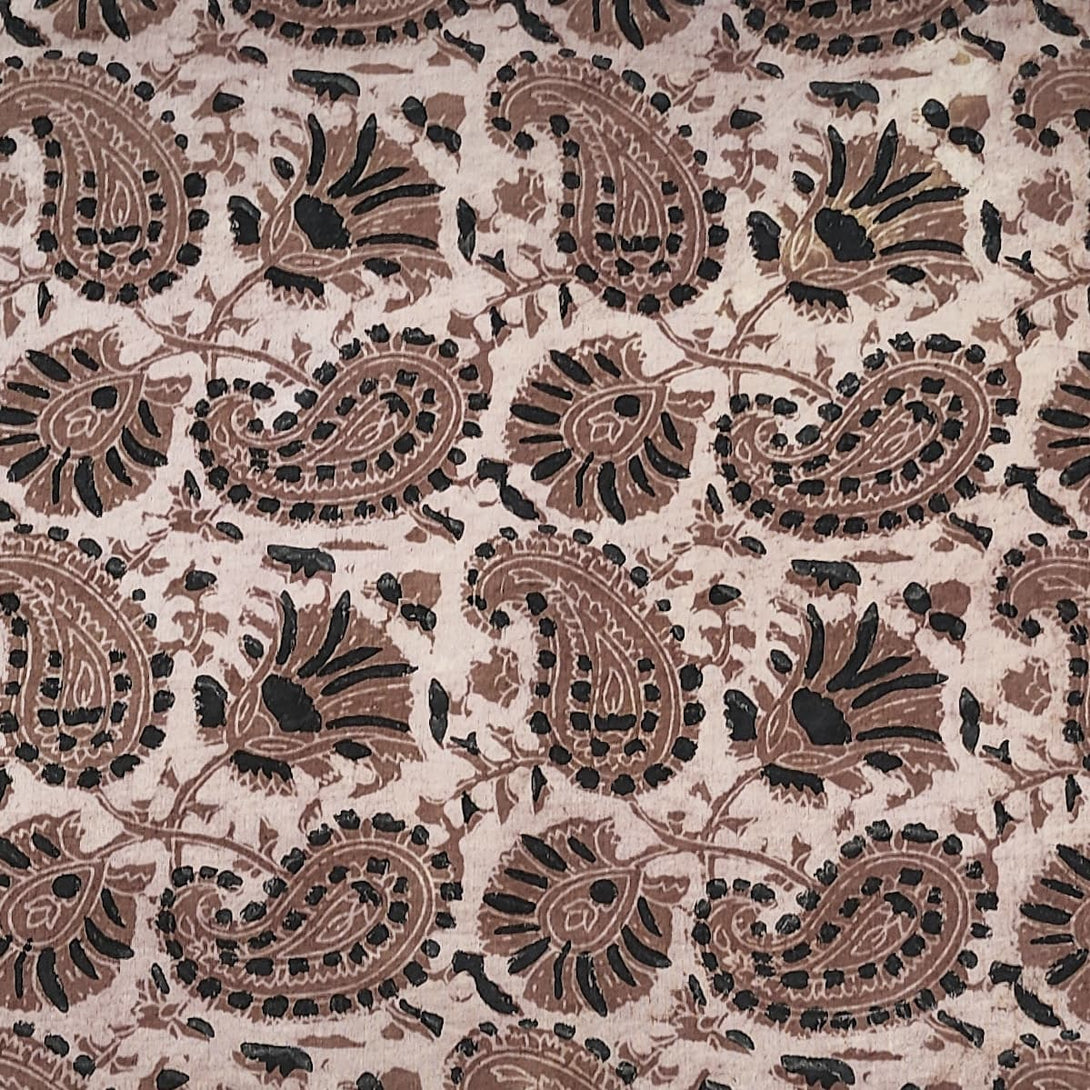 (PRE-CUT 1.30 METER) Pure Cotton Vanaspati Beige With Brown And Black Paisley Hand Block Print Fabric
