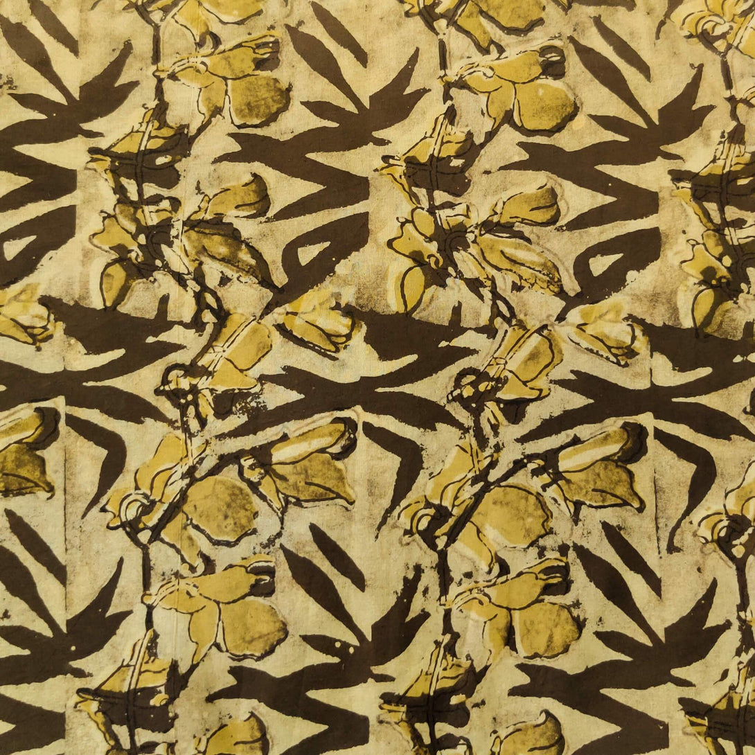 Pre-cut 1.35 meter Pure Cotton Dabu Ajrak With Sandy Mustard Flower Grass Hand Block Print Fabric
