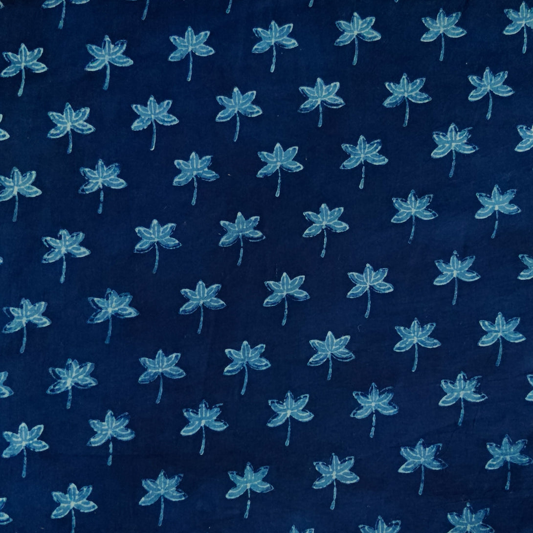 PRE-CUT 1.40 METER Pure Cotton Akola Indigo With Neel Kamal Hand Block Print Fabric