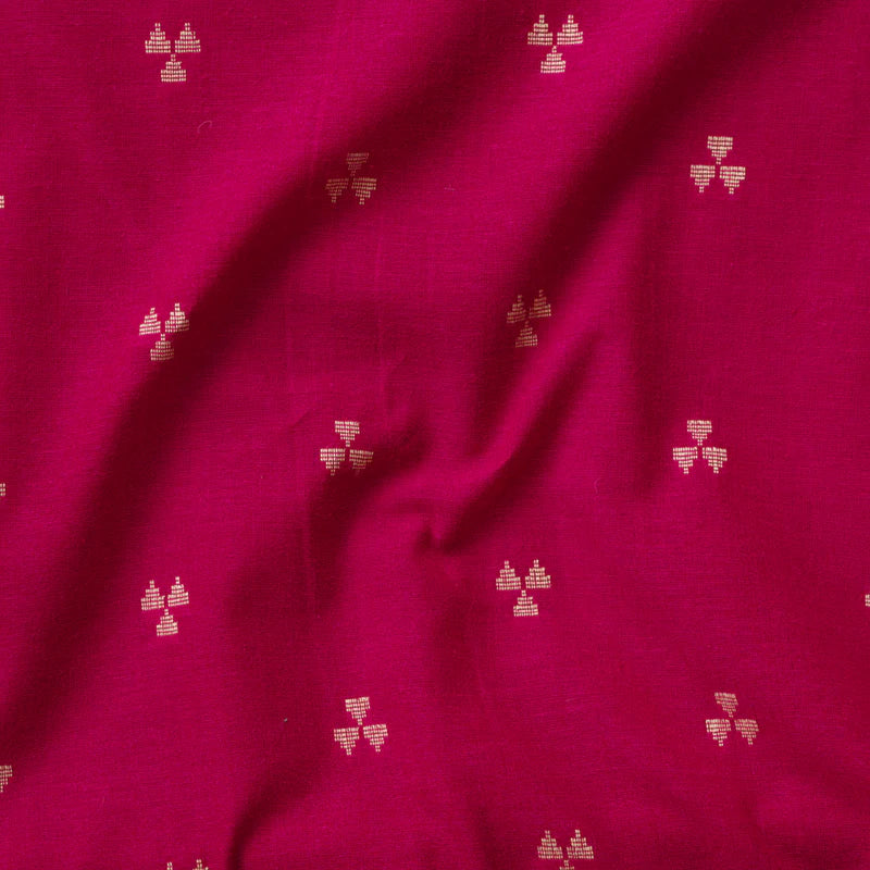 ( PRE-CUT 1.40 METER ) Pure Cotton Handloom Pink With Cream Three Triangle Motifs Woven Fabric