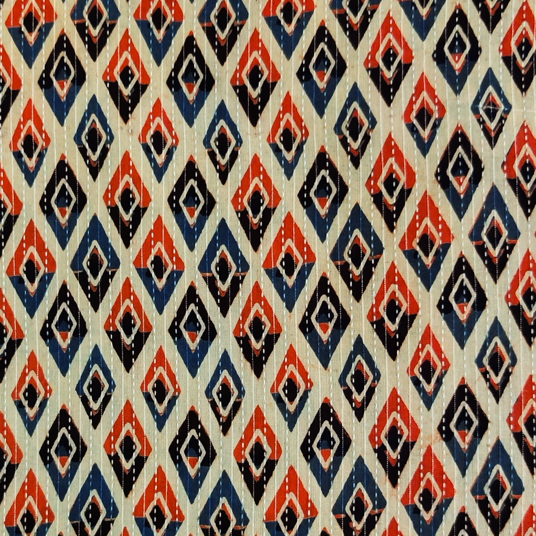 Pre-cut ( 1.40 Meter ) Pure Cotton Kaatha With Shades of Orange Diamond Hand Block Print Fabric