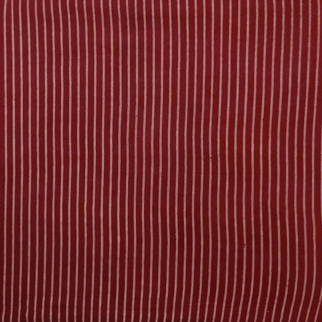 Pre-Cut 1.40 Meters Pure Cotton Ajrak Vegetable Dyed Rust With Cream Stripes Hand Block Print Fabric
