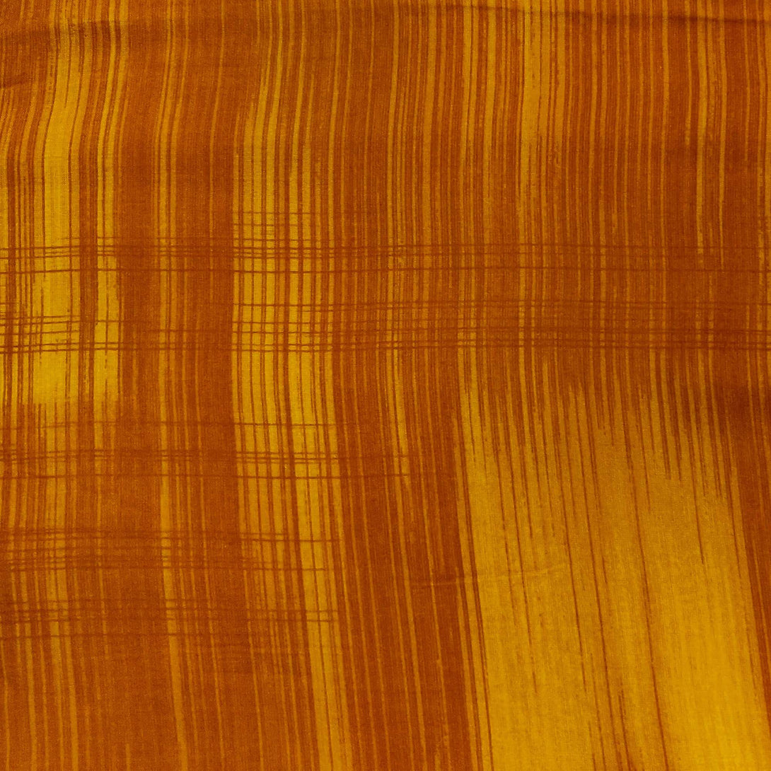 Pre-cut ( 1.45 meter )Mustard Rayon Fabric With Brown Textured Scren Print Fabric