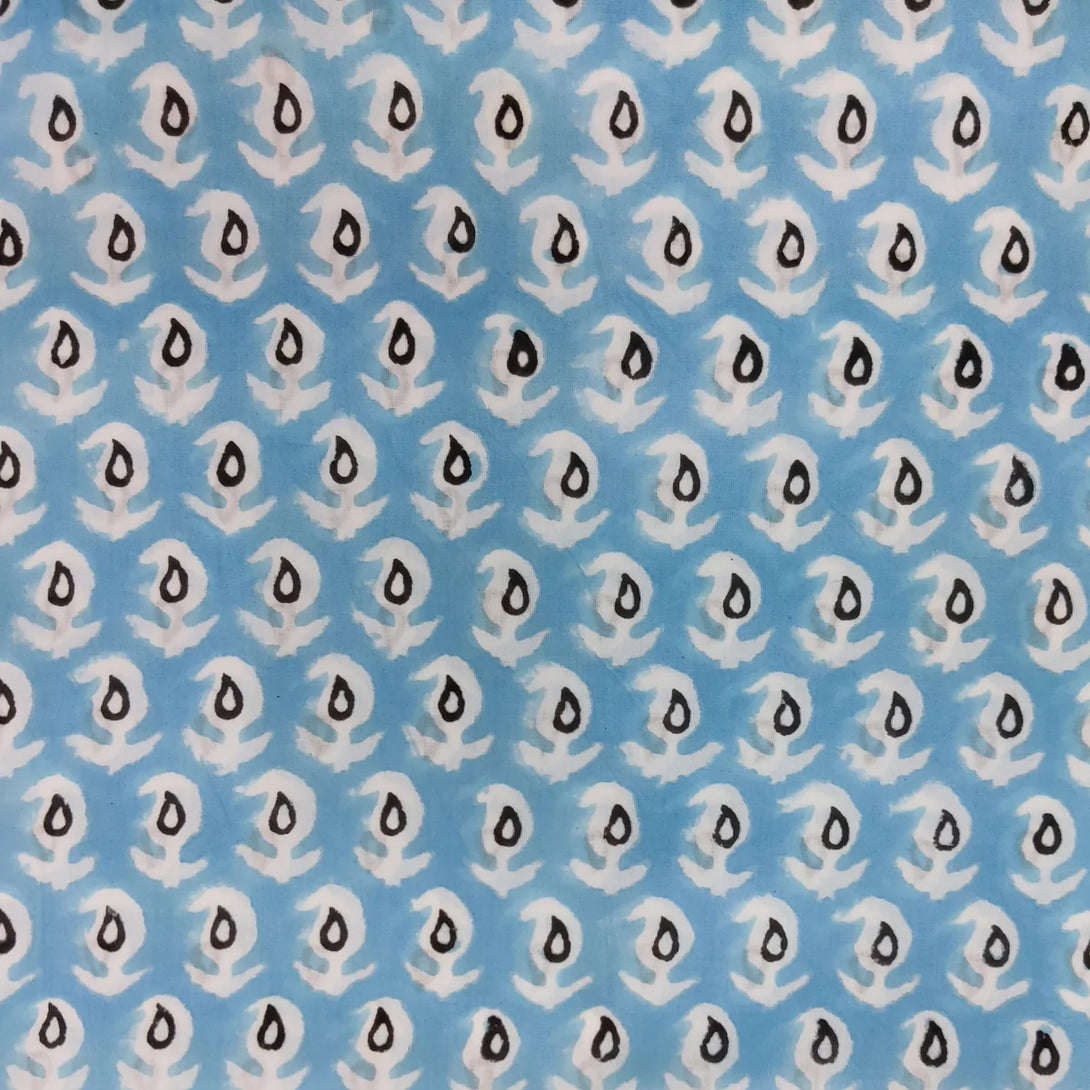 Pre-cut ( 1.45 meter )Pure Cotton Jaipuri Sky Blue With White Kairi Hand Block Print Fabric