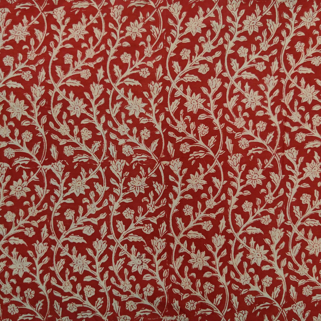 Pre-Cut 1.45 Meters Pure Cotton Bagru Madder With Curvy Jaal Hand Block Print Fabric
