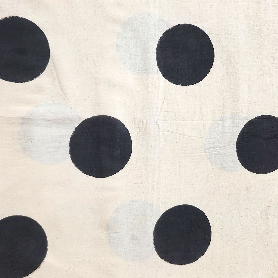 (PRE-CUT 1.5 METER) Pure Cotton Ajrak Off White With Black Big Circle Hand Block Print Fabric