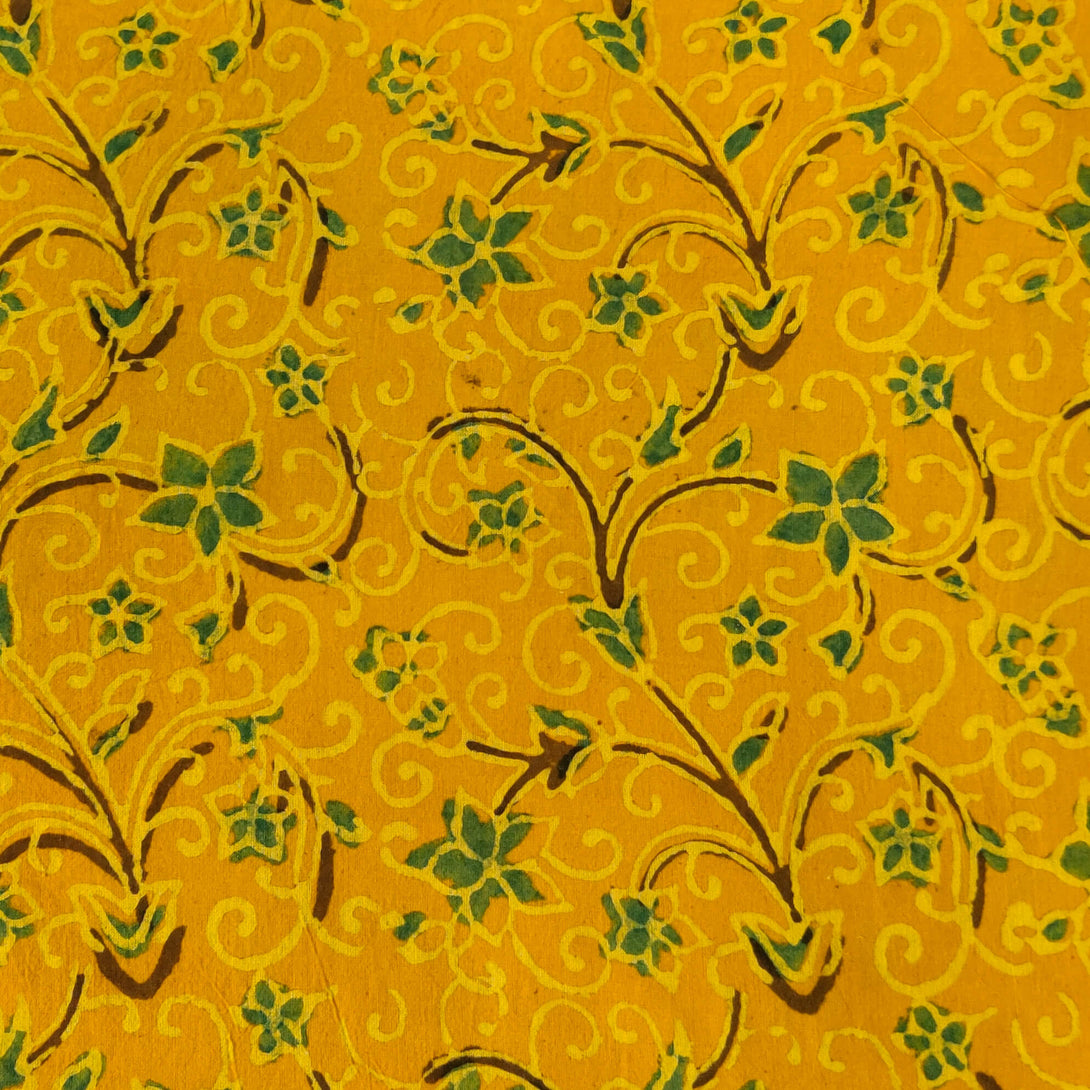 Pre-cut 1.5 meter Pure Cotton Ajrak Turmeric Dyed With Green Floral Jaal Hand Blcok Print Fabric