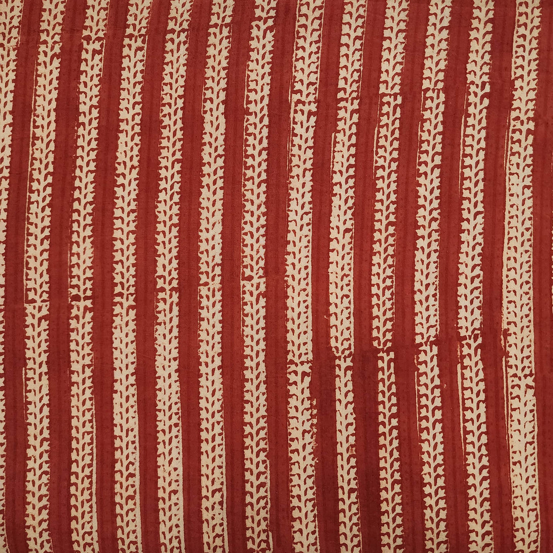 Pre-cut 1.5 meter Pure Cotton Bagru Rust With Border Stripes Hand Block Print Fabric
