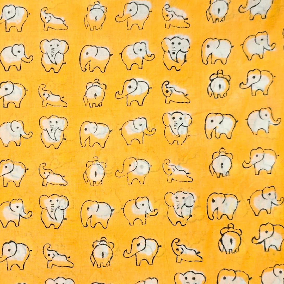 ( PRE-CUT 1.5 METER ) Pure Cotton Jaipuri Yellow With White Elephant Motif Hand Block Print Fabric