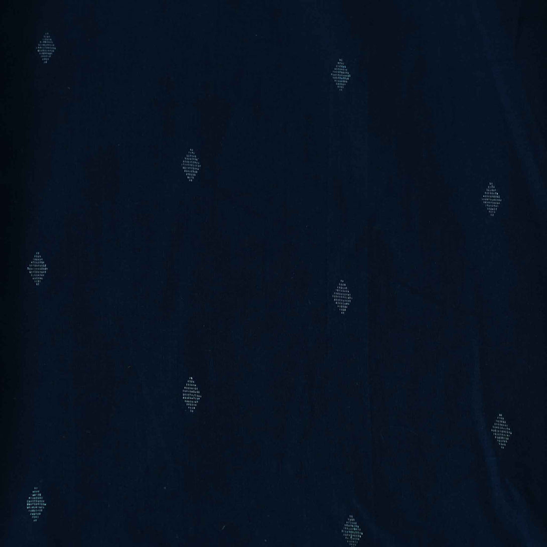 Pre-cut ( 1.5 meter )Pure Cotton South Handloom Navy Blue With Silver Zari Diamond Woven Fabric