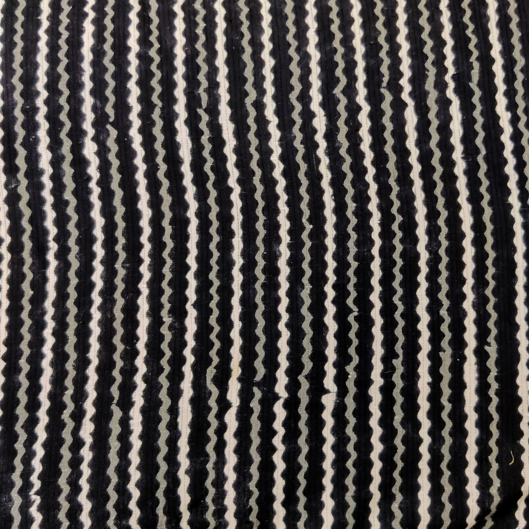 Pre-cut 1.5 meter Pure Cotton Yarn Dyed Doby Black With Waves Hand Block Print Fabric